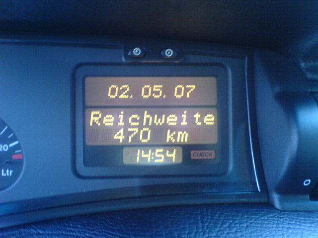 Hi,Und nach dem Tanken war ich dann schon ganz schön erstaunt als mein Bordcomputer 1420 km Reichweite anzeigte. Aber seht selbst.