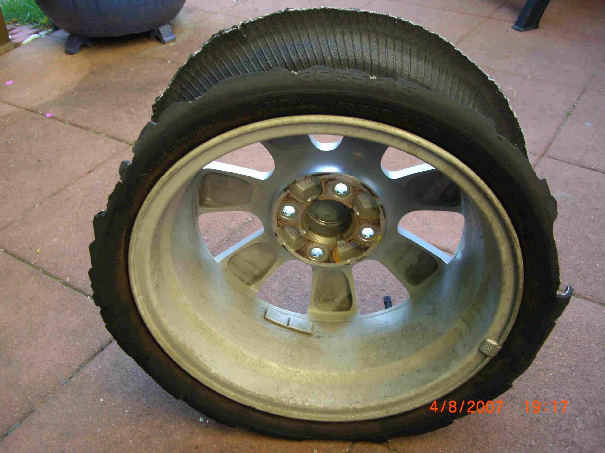 Wir haben uns vor 3 Wochen einen 1 jährigen Opel Corsa C 1,2 beim Opelhändler mit 3 Jahren Garantie gekauft und genau am 04.08.07 Platz meiner Frau der linke Hinterreifen auf der Autobahn bei Kassel mit 120 KM/H. Es sind 185/55 R15 Continental Premium Conact2 Reifen die gerade mal ein Jahr alt sind. Von Kulanz keine Spur beim Händler ! Meine Frau und die Tochter sind nochmal mit dem Schrecken davon gekommen. Heute Morgen waren wir bei dem Opel Händler und ihm den defekten Reifen zu zeigen, er meinte nur: Nicht nach dem Luftdruck gesehen, vieleicht etwas rein gefahren usw.