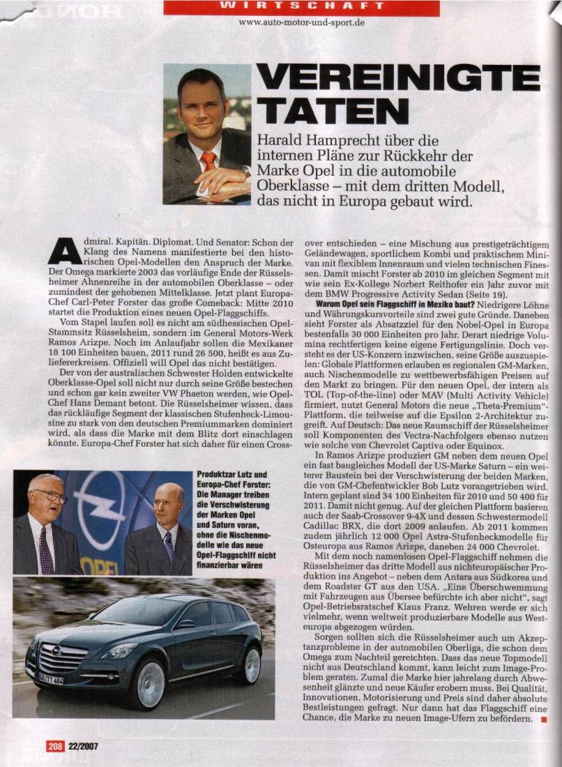 Was muss ich da lesen, Rüsselsheim geht vollkommen leer aus bei der Produktion der neuen Oberklasse von Opel. Aber lest selbt: