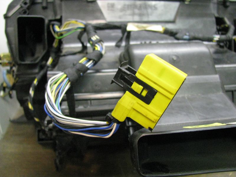 Bild 1-3: die beiden Stecker. Einmal der gelbe der vom Klimakasten zur Bedieneinheit geht und einmal der schwarze der am Kabelbaum ist zur Bedieneinheit.