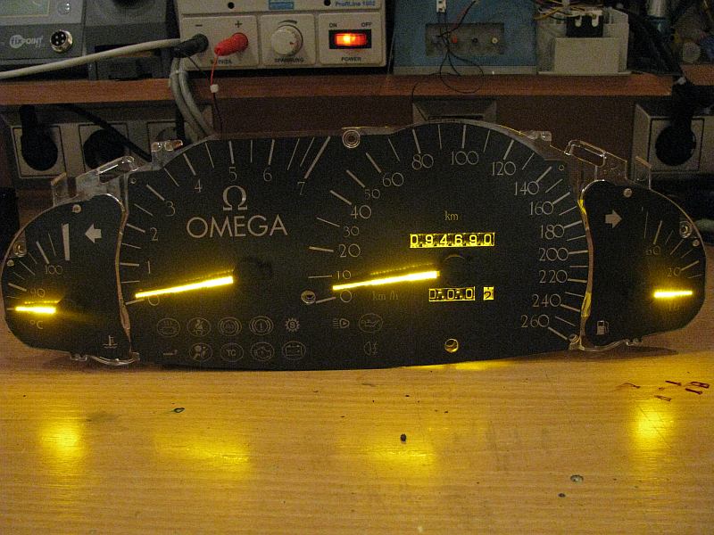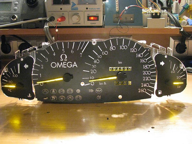 Die SMD Reihen sind hinter der Tachofolie verborgen, so sieht man nur