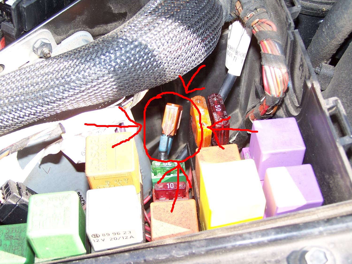 Habe heute beim Putzen, auch mal den Motorraum ein bisschen Sauber gemacht und habe, als ich den Deckel vom Relaiskasten, vorne links im Motorraum, wo auch das Steuergerät sitzt, zwei Kabel entdeckt, die mit einer dicken 40 Amper Sicherrung, verbunden sind.