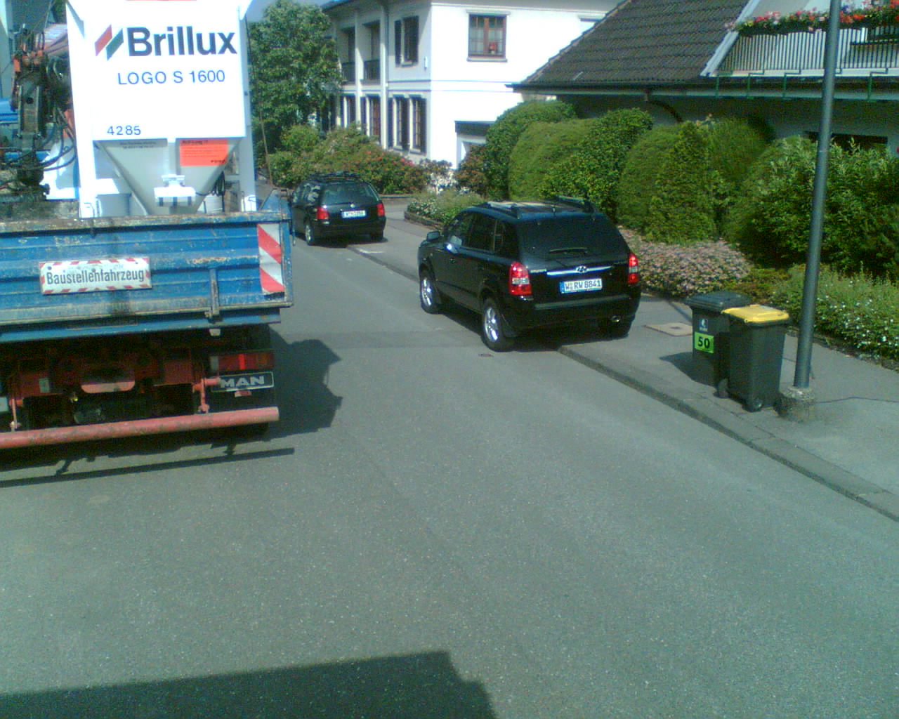 Da die Maler noch nicht auf der Baustelle waren und wir noch auf sie warten mussten, standen wir zwichen unseren LKW´s und unterhielten uns, als pöltzlich ein Herrenloser Audi A2 an uns vorbei fuhr und mit lauten Knall in einem anderen LKW, der an der Baustelle stand, landete