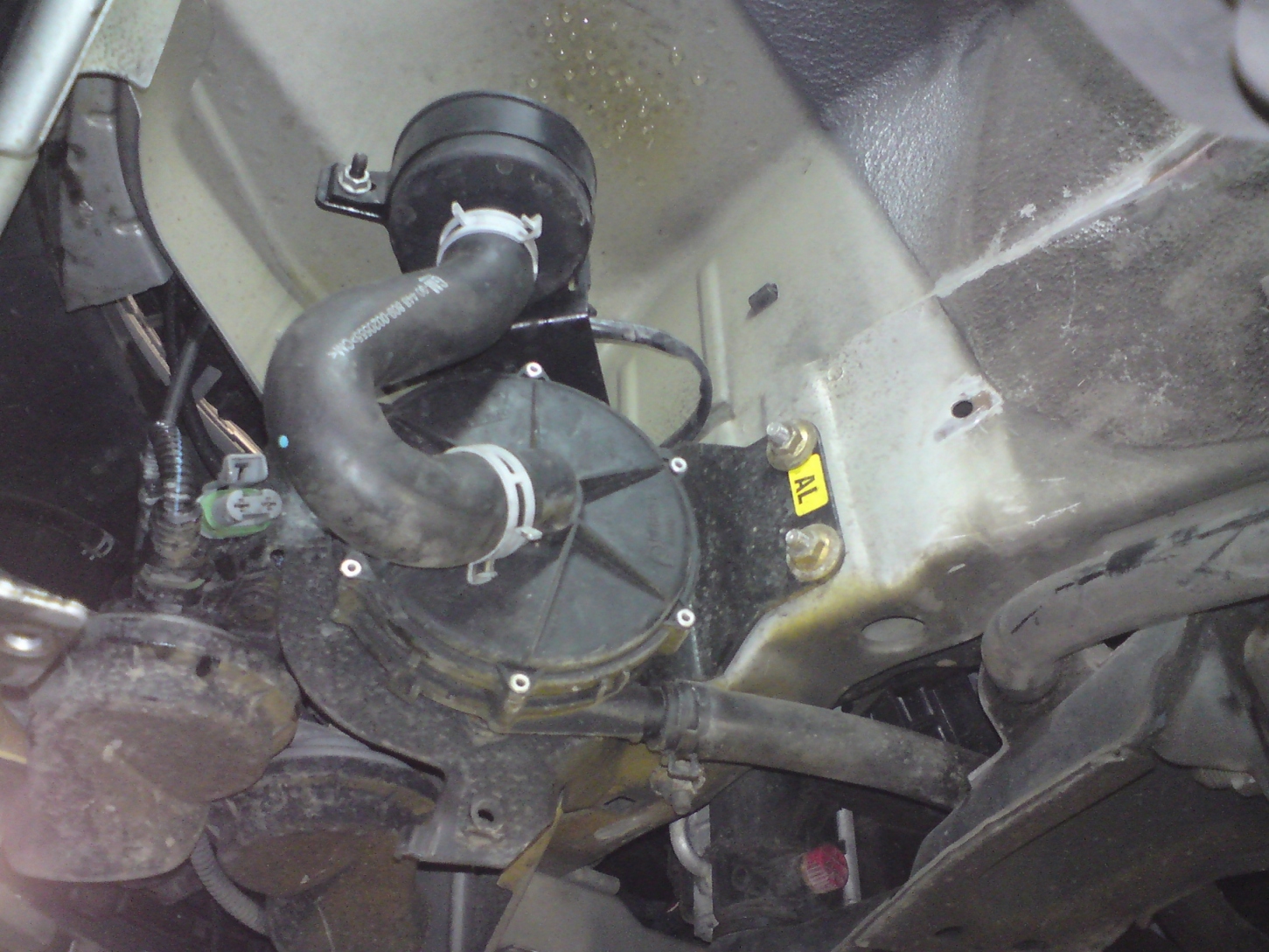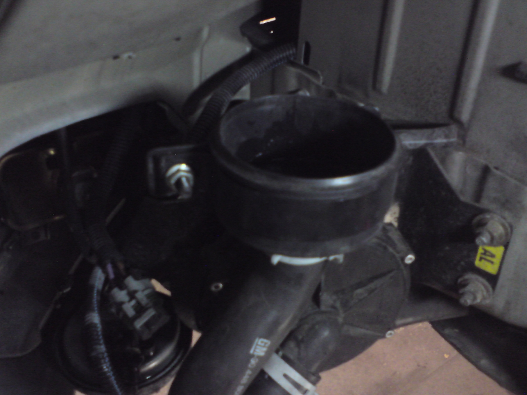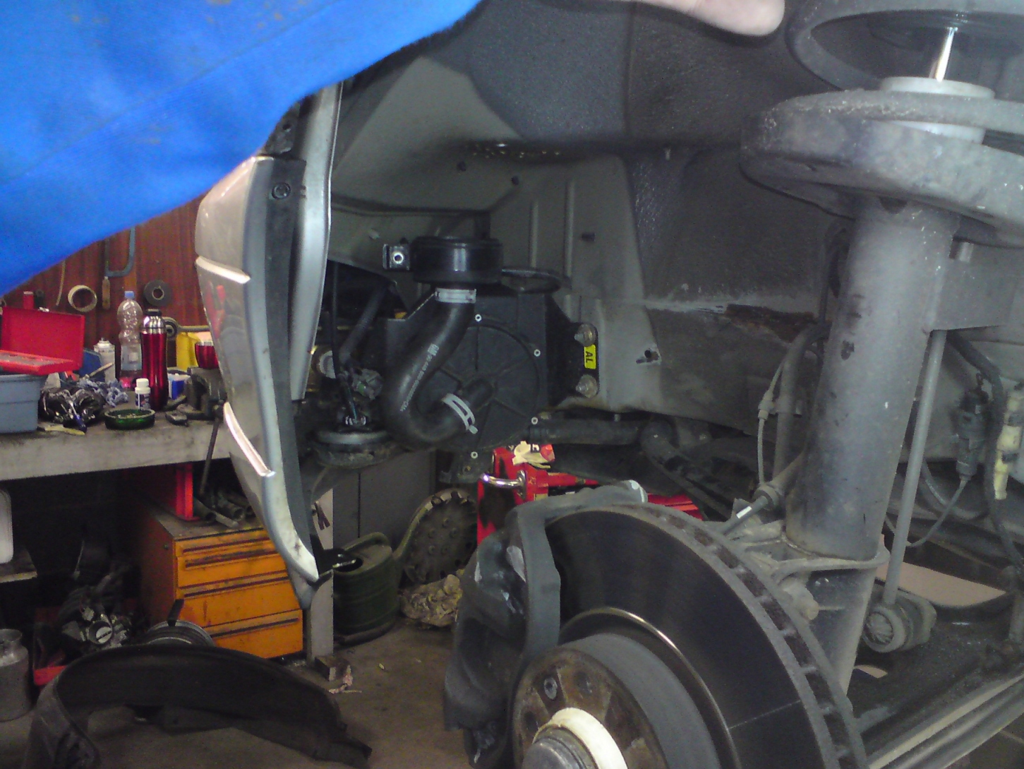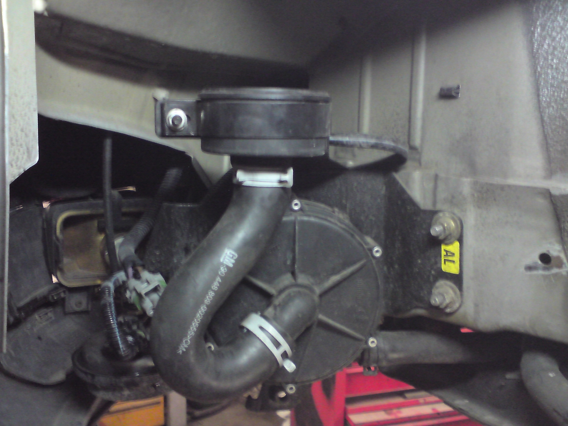 Hierbei konnte ich auch ein Teil entdecken, wo mir leider in unserer Hobby-Schrauber-Werkstatt keiner sagen konnte, was es ist. Von diesem Teil aus kommt auch das Geräusch. Wenn man kurz die Hand drauf legt, merkt man, dass sich der Ton ändert. Kommt also bestimmt von diesem Teil. Des weiteren sind über dem Trichter dieses Teils Wassertropfen an der Karosserie zu erkennen (siehe Bilder).