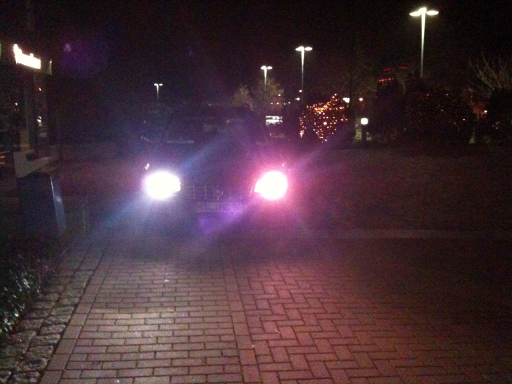 Wenn ich mit den ColorMatch brennern auf eine Fensterfront (Schaufenster oder Industrigebäude usw.) zu fahre und sich die Scheinwerfer im Glas spiegeln, dann sehe ich ein sehr wiesses Licht mit einem schönen Schimmern in Blau/Violett. Also genau so wie es sein sollte. ![]()