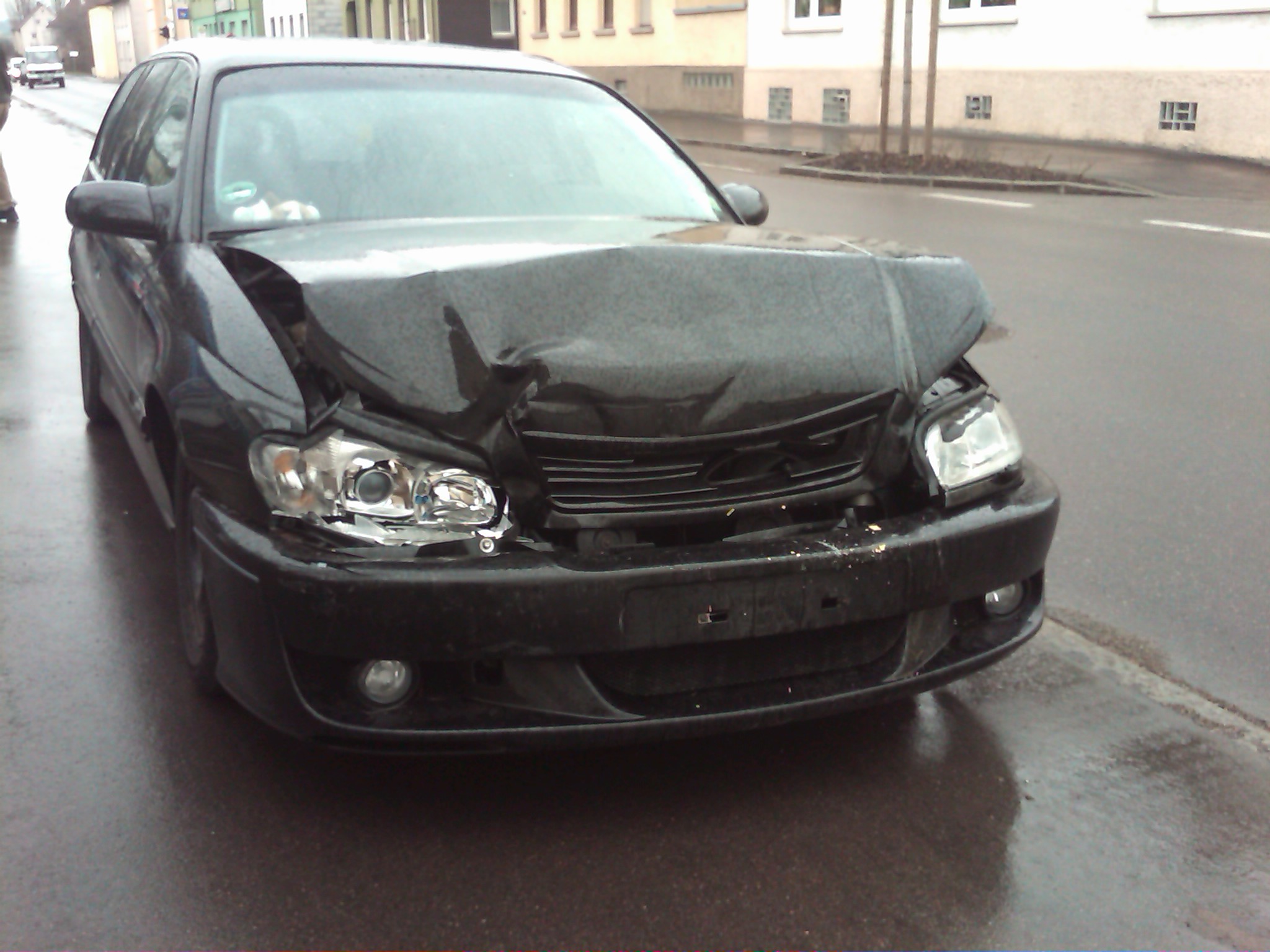 Auf jedenfall sind die Kotflügel nicht verzogen bzw hat es nicht erwischt aber vorn ist alles krumm und kaputt Kühler,Lüfter usw.