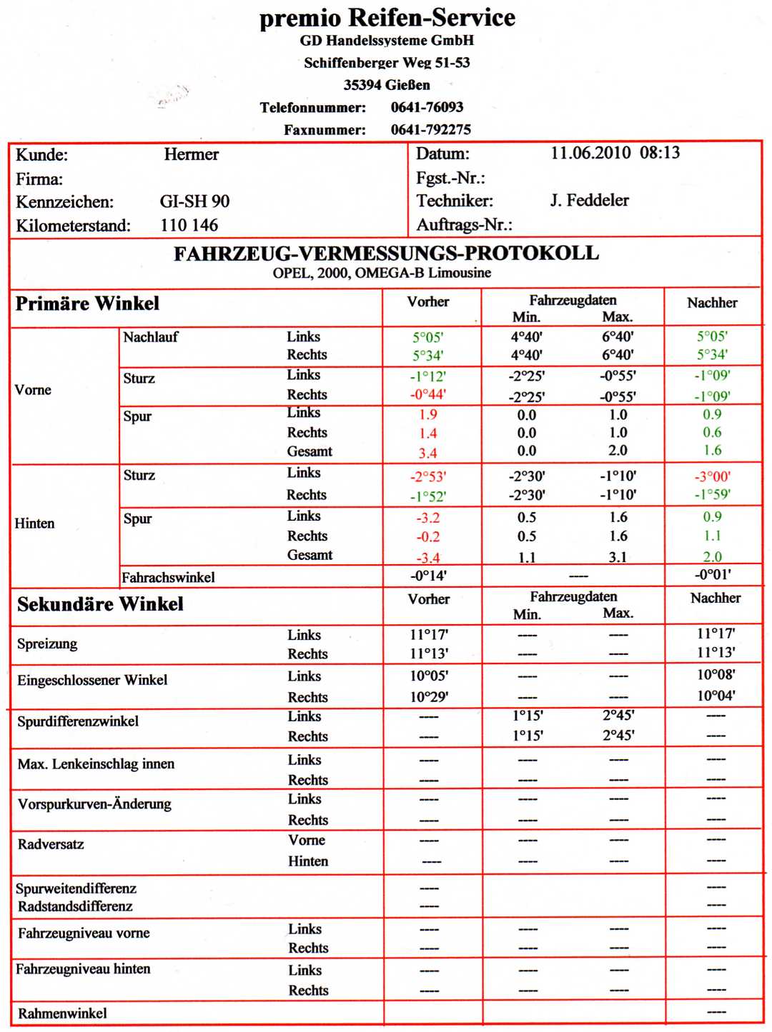 Ich war heute beim Achsvermessen bzw. Spureinstellen und Hinten Links ist der Sturz bei -3,00'. Dazu muss ich sagen, dass ich im Winter leider über einen Bordstein mit der Rechten Seite gerutscht bin, aber es die Linke Seite schlimmer erwischt hatte.