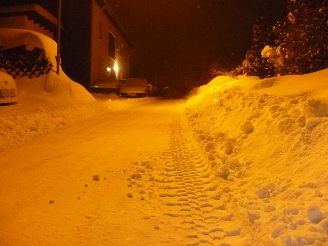 Ich habe aber heute für morgen vorgesorgt. Ich bin beim Einparken so lange hin und hergerollt, bis ich mir zwei saubere Spurrinnen im Schnee organisiert habe. Also komme ich morgen hoffentlich ohne dass ich sehr viel schimpfen muß wieder ausm Parkplatz raus.