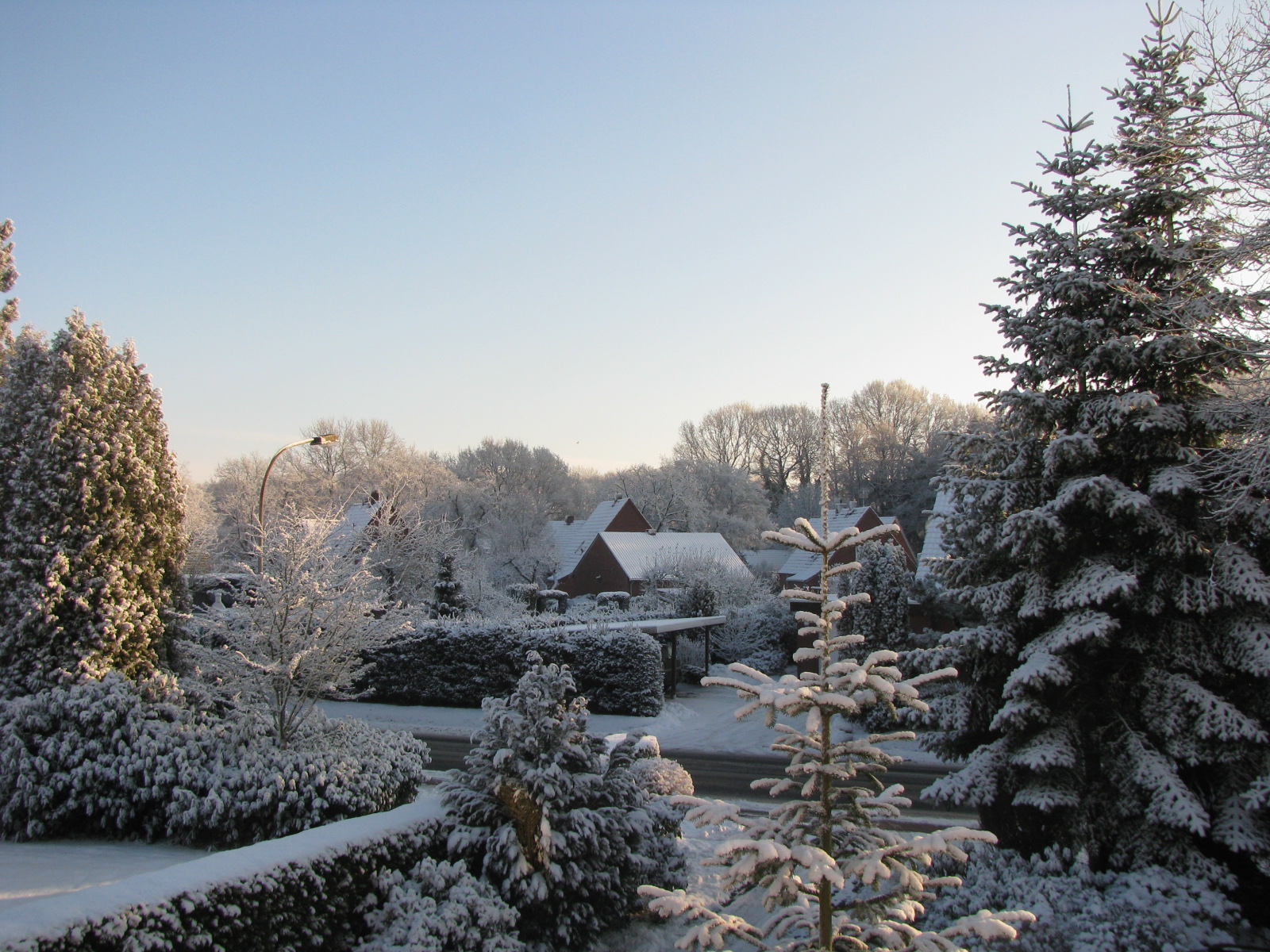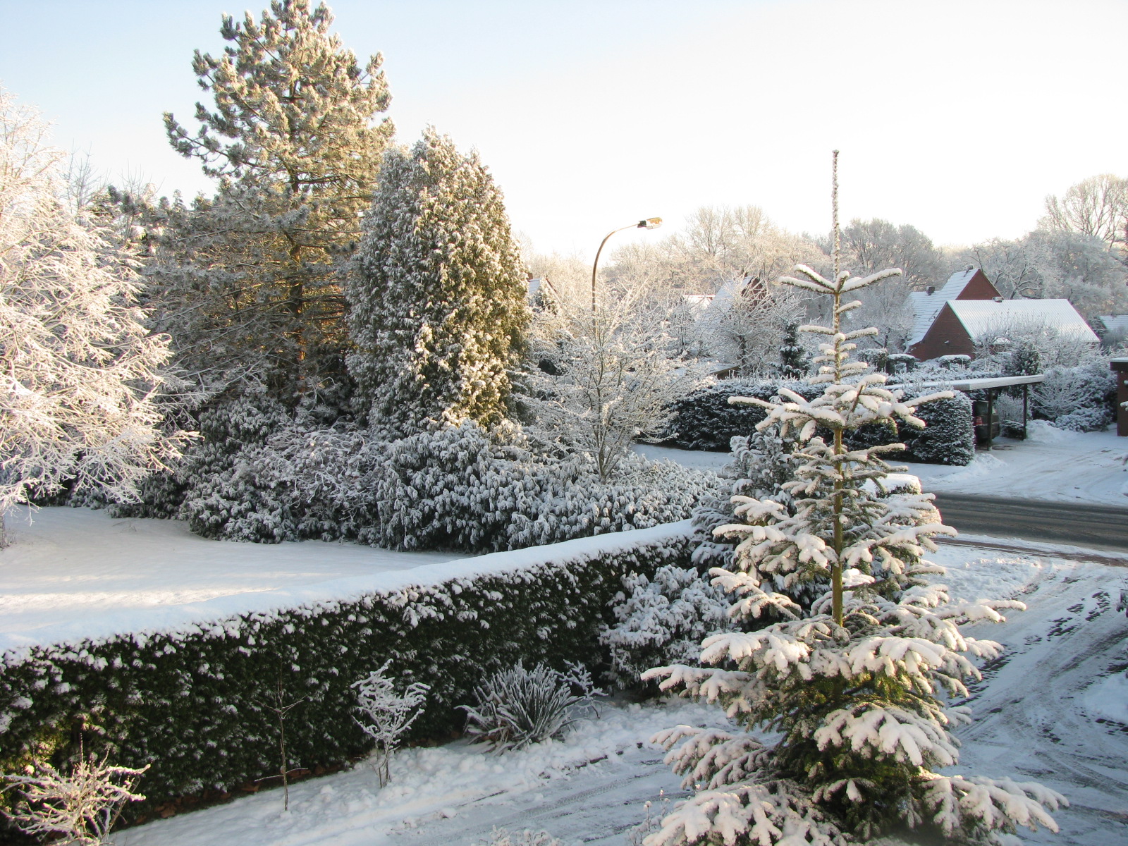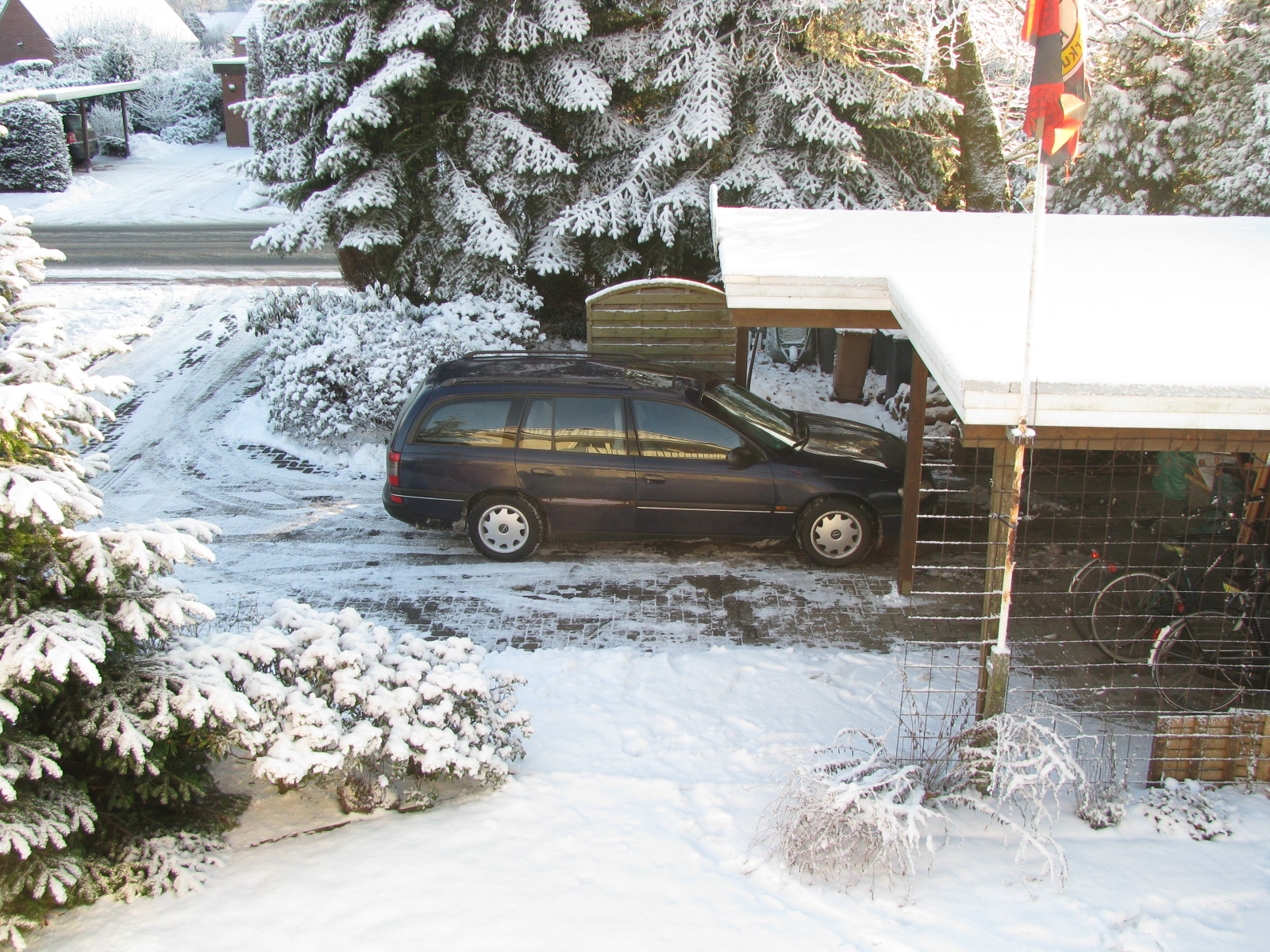 Jetzte auch mal ein paar Bilder aus dem Ammerland. Fotografiert am Samstagnachmittag vom Balkon aus. Geschneit hat es seitdem kaum noch, aber die Straßen sind sauglatt.