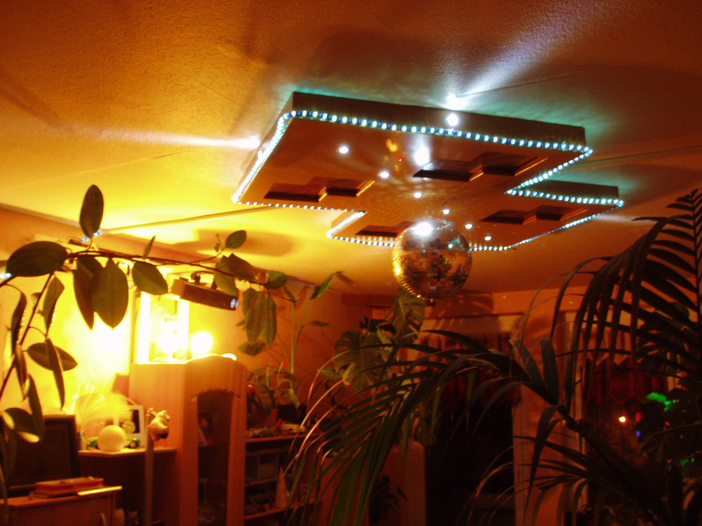 Die ersten Bilder zeigen meine selbstgebaute Wohnzimmerlampe und die anderen die Lichtanlage mit dem neuen Laser. Ja das ist wirklich mein Wohnzimmer!