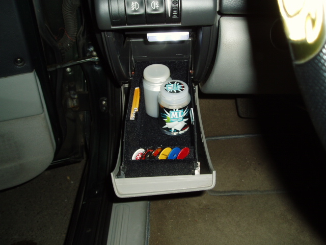 also das kleine Fach nebem dem Lenkrad hat ja eigentlich keine Beleuchtung und das hat mich schon lange genervt! Bisher musste ich meine Kaugummis immer im Dunkeln in dem Fach suchen