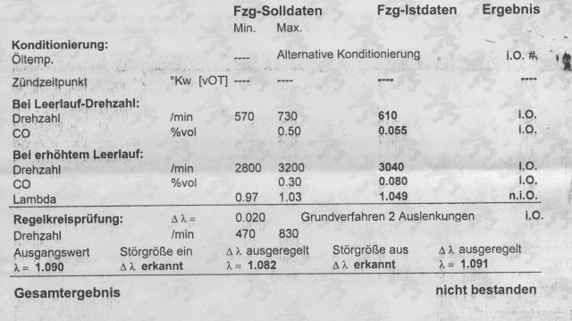 Der Prüfer meinte das vermutlich irgendwo was undicht ist und er meinte auch das es vermutlich irgendwo zwischen Lambdasonde und Endschalldämpfer ist?
