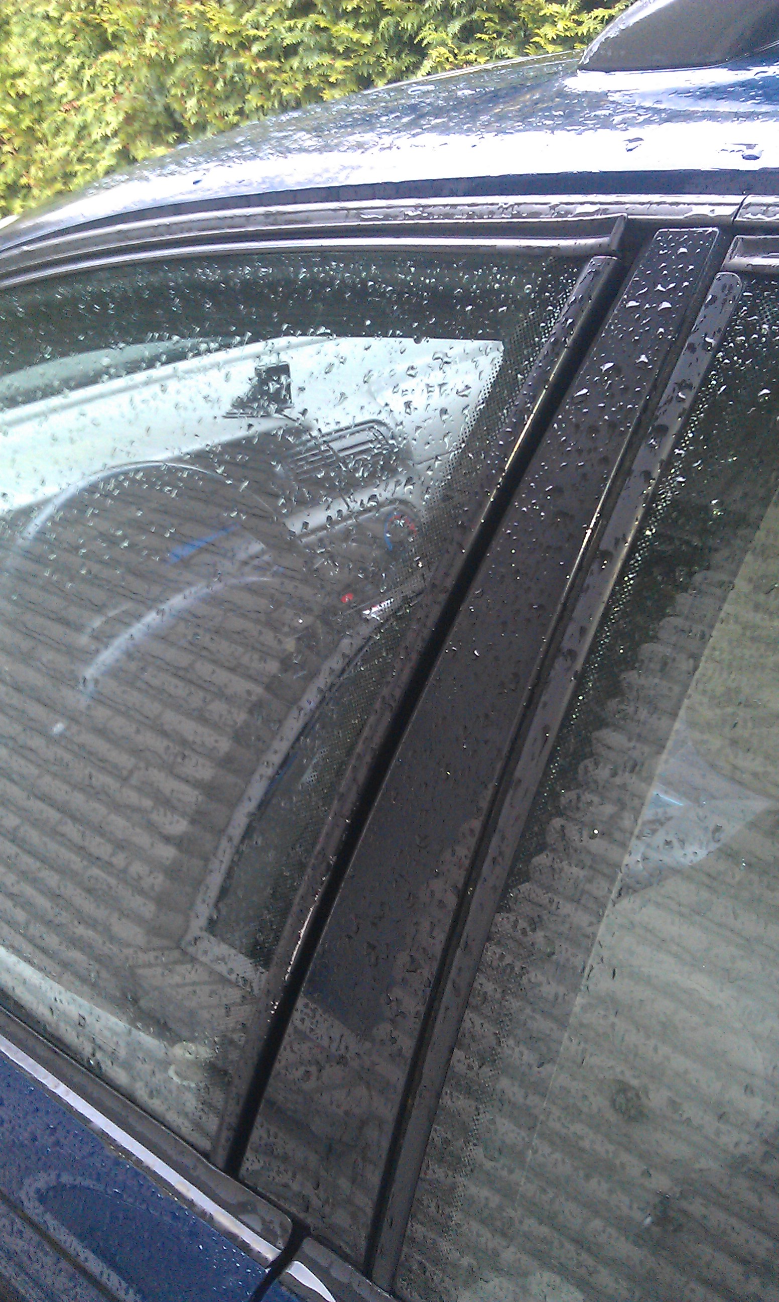 das hat damit nix zu tun es is nur der oberre fenster rahmen und das hab ich schon offt bei ommen gesehen mein A hatte das auch damals entweder kommt es durch fahrzeugverwindung oder jemand hat versucht einzudringen