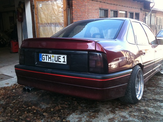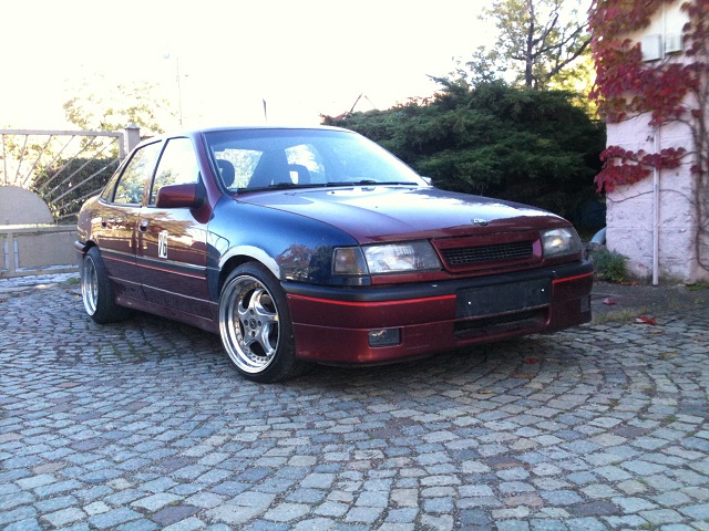 Einmal ein 1.6er Vectra A der von mir auf C20NE und 2000er Optik umgebaut wurde und auf 9 u. 10X16 Artec S2 Felgen steht