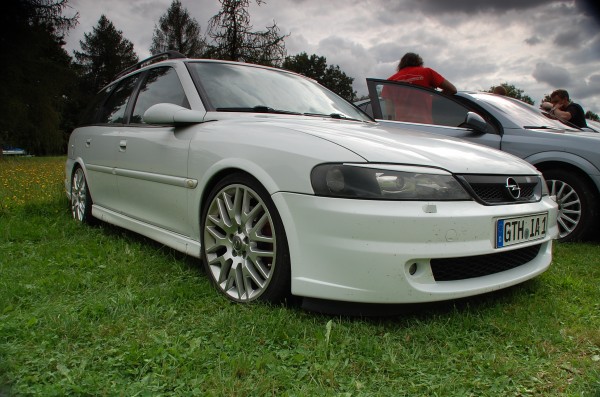 Und dazu mein "Alltagsauto", ein Vectra B V6 Caravan der auf 2001er Sport Optik umgebaut wurde, mit Gewinde, 18er OPC Line Felgen und anderen Kleinigkeiten