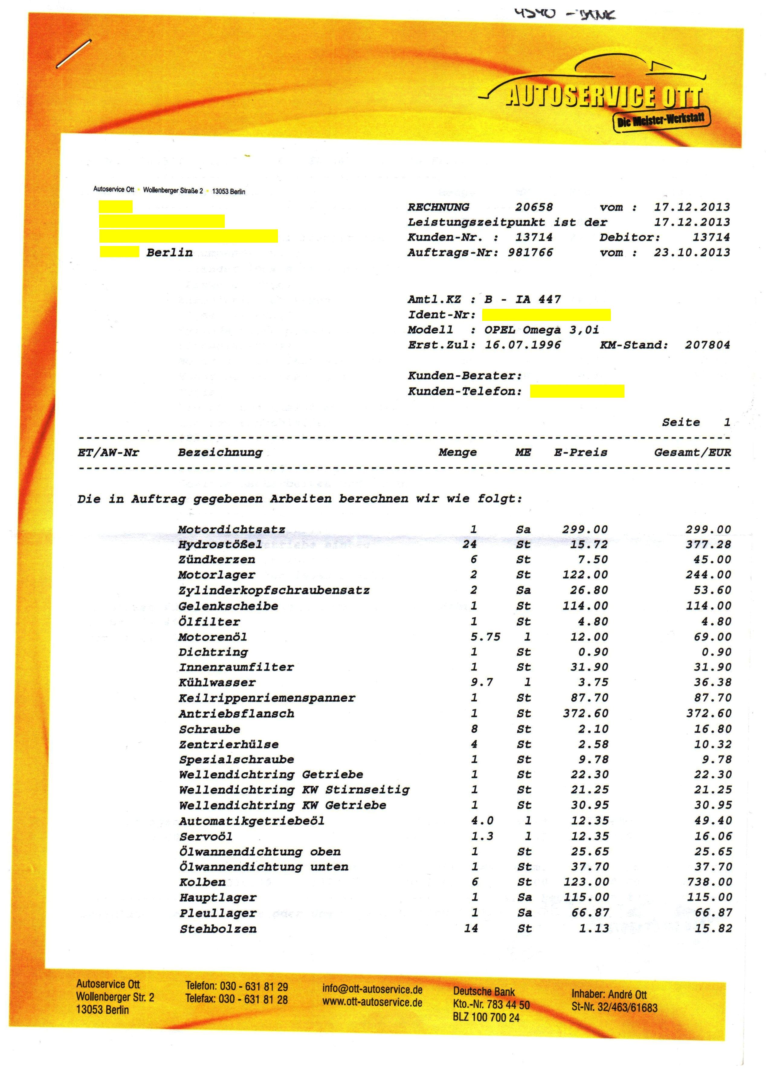 Sorry das steht alles in keinem Verhältnis auch wenn man seinen Wagen liebt. Ich wünsche dir das da wenigstens ordentlich gearbeitet wurde. Hast du da nicht vorher gefragt was das kostet? Wie gesagt da wäre eine werksneue Maschine mit Einbau bei Opel wohl billiger gewesen.