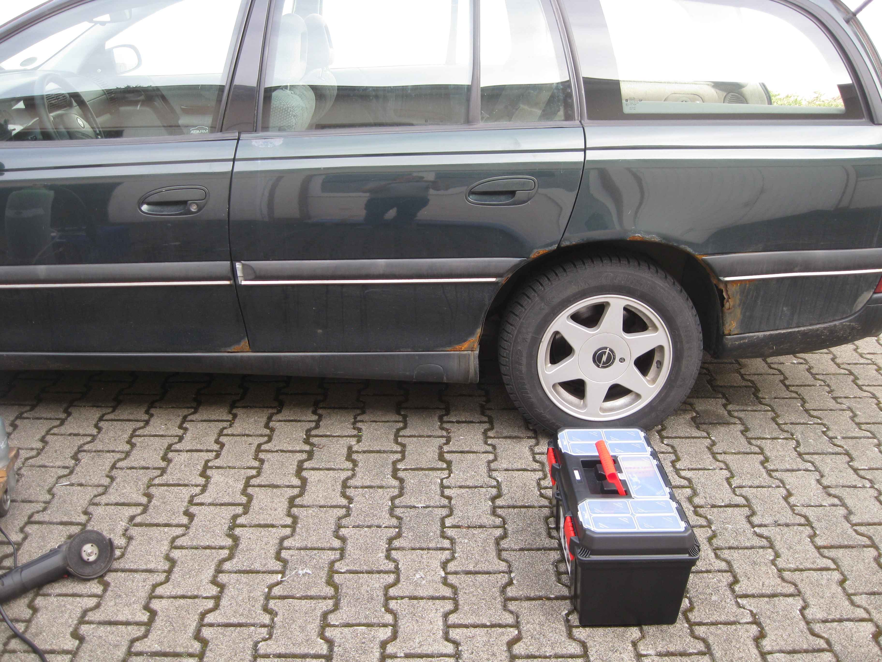 Allerdings stand noch ein Auto drauf, ein 97ger CD Caravan, Automatik, X20XCV Motor. Auf die Frage, was der Verkäufer damit vor hätte, bekam ich zur Antwort, daß der Caravan nächste Woche zum Verwerter geht und der Verkauf der Reifen die Kosten dafür einspielen sollte. Mein scherzhafter Einwurf " Da lege ich noch einen Fuffi auf den Reifenpreis und nehme den ganzen Wagen mit " machte mich zum stolzen Besitzer eines offensichtlich schwer angerosteten Caravans. Immerhin schnurrte der Motor wie ein zufriedenes Kätzchen.