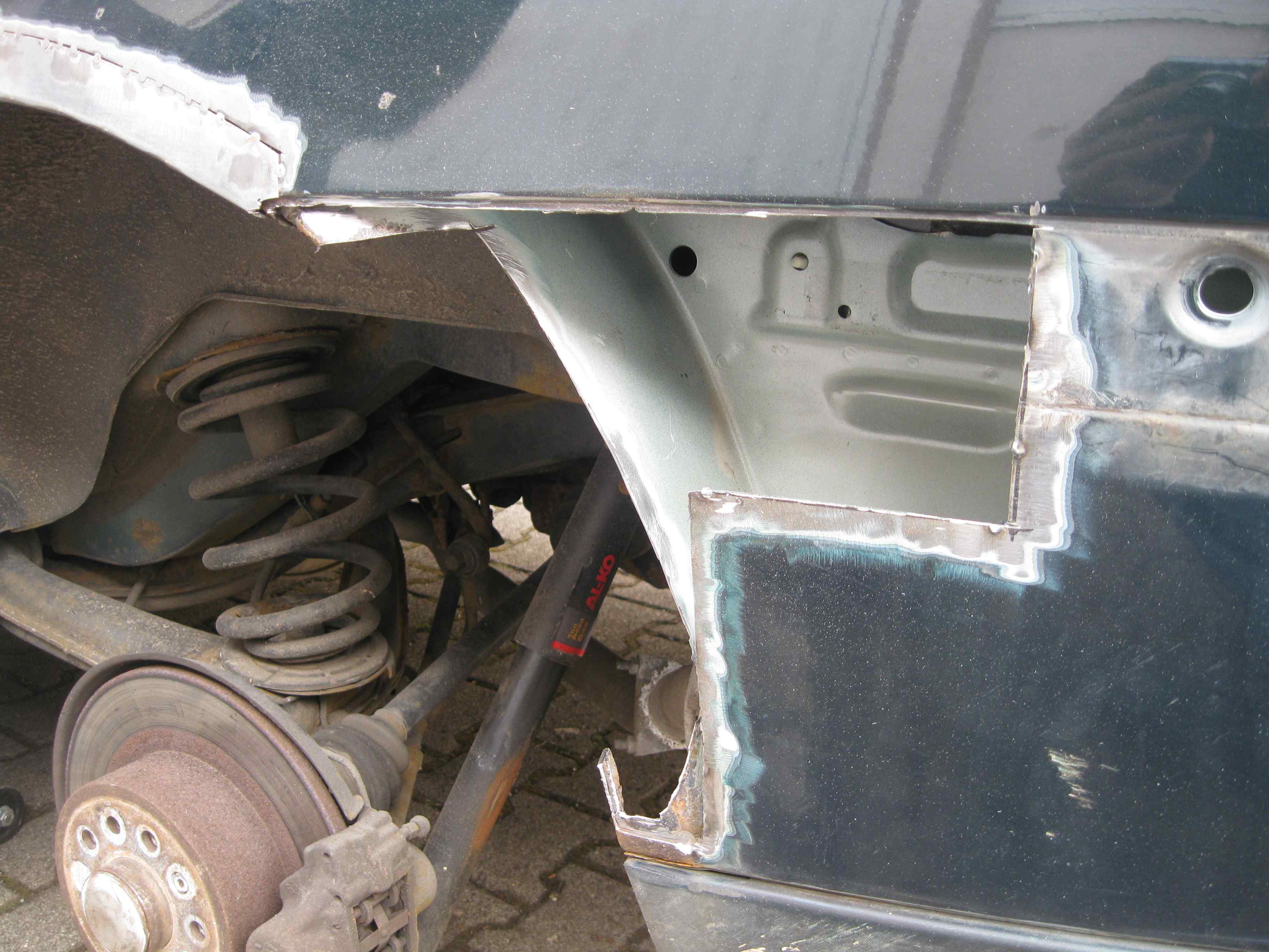 Dazu muß man sagen, ich trenne alles rostige Material heraus und fertige alle Reparaturbleche aus verzinkten Stahlblech selbst an, und schweiße sie dann stumpf ein.