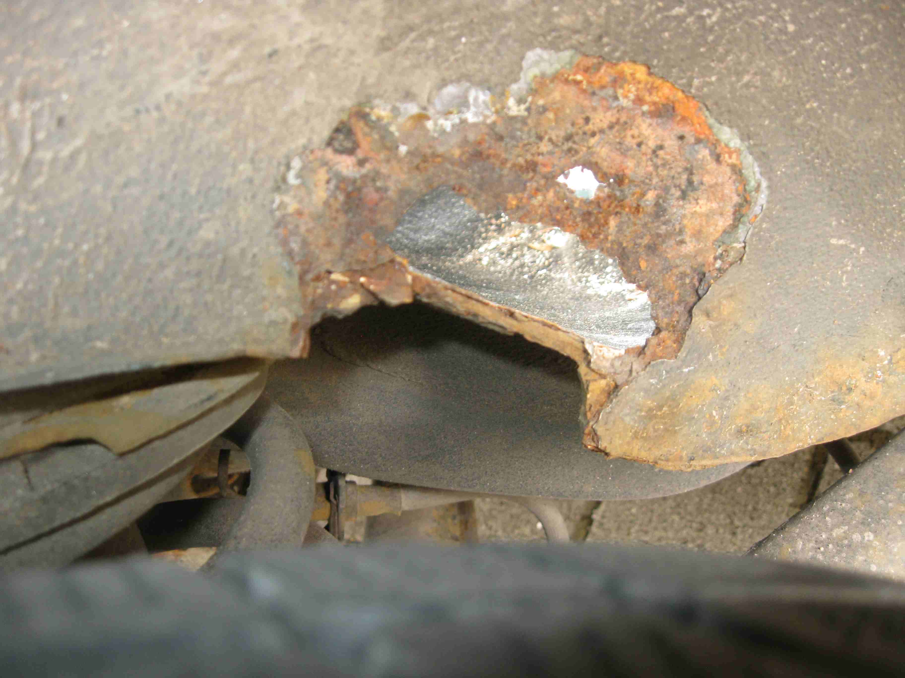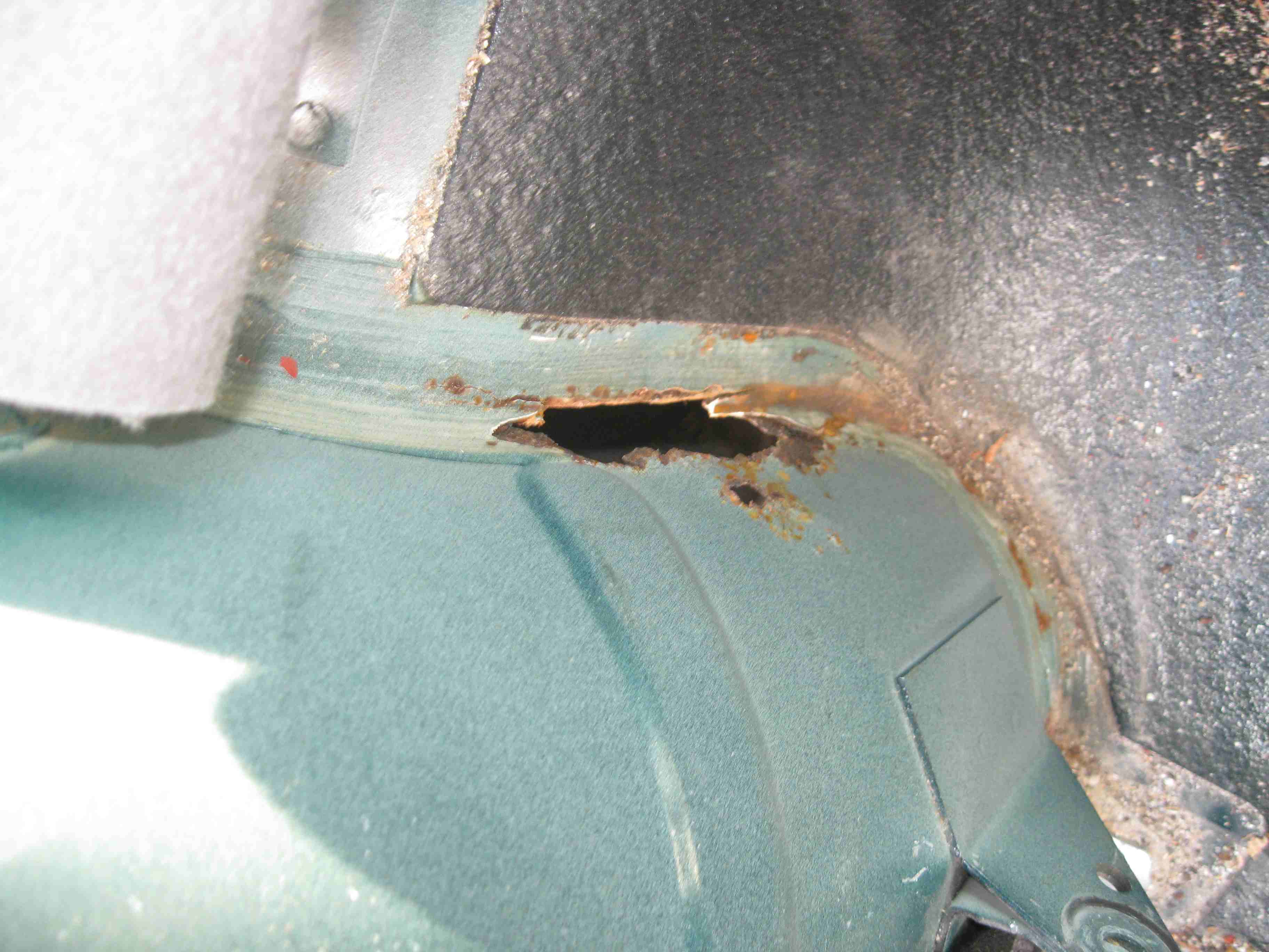 Die Bodenbleche und Rahmenteile sind ok, teils angerostet weil Lack abgeplatzt ist, aber nirgendwo ernsthaft geschwächt oder gar durch. Die Rettung kommt rechtzeitig.