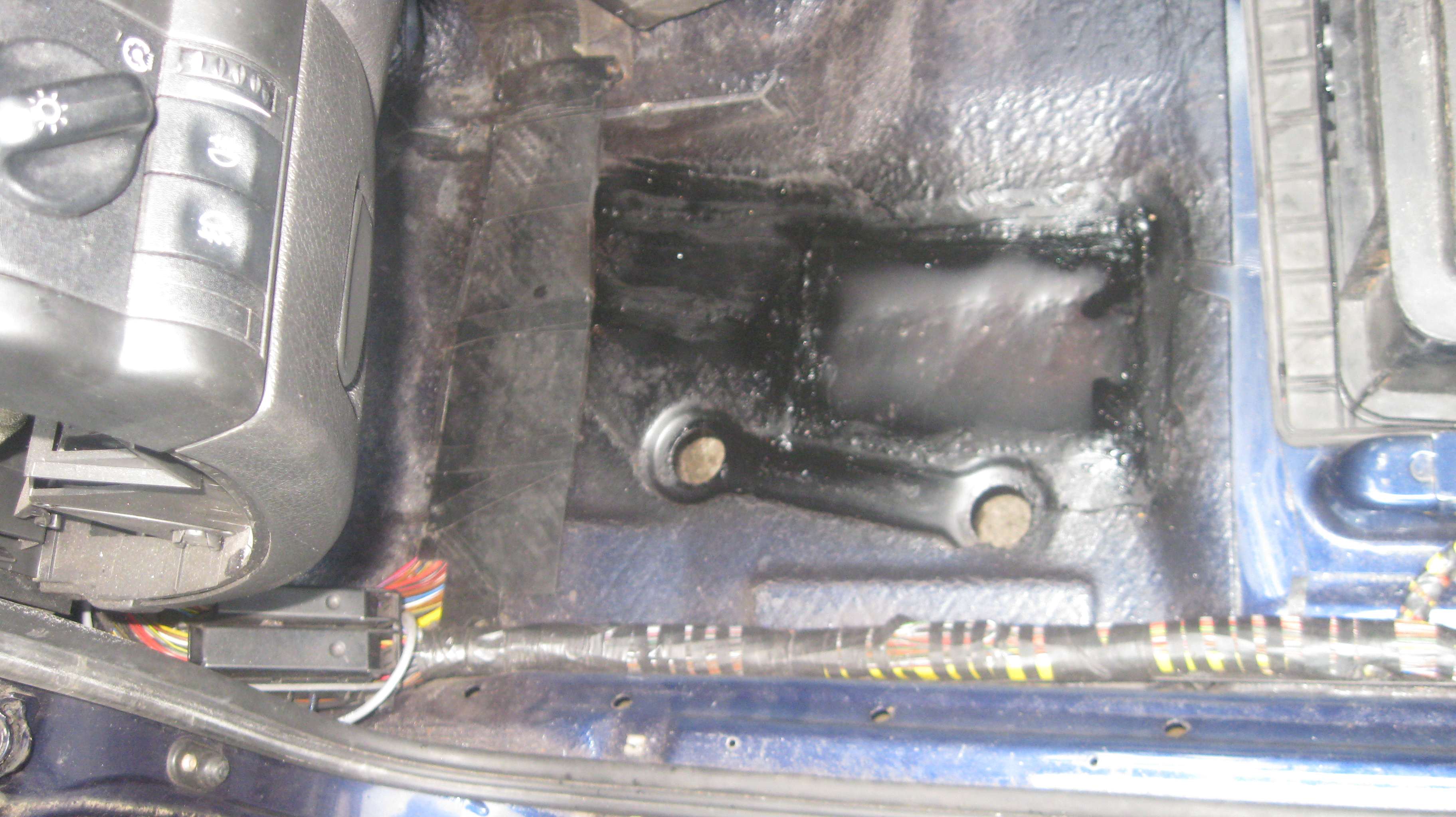 Zu schweißen sind jetzt noch die Schweller (beide Seiten) jeweils innen, Höhe B Säule. Die Technik ist ebenfalls schon ziemlich überholt (Bremse komplett) zu machen sind hier noch das Lenkradschloß und die Xenon Scheinwerfer.