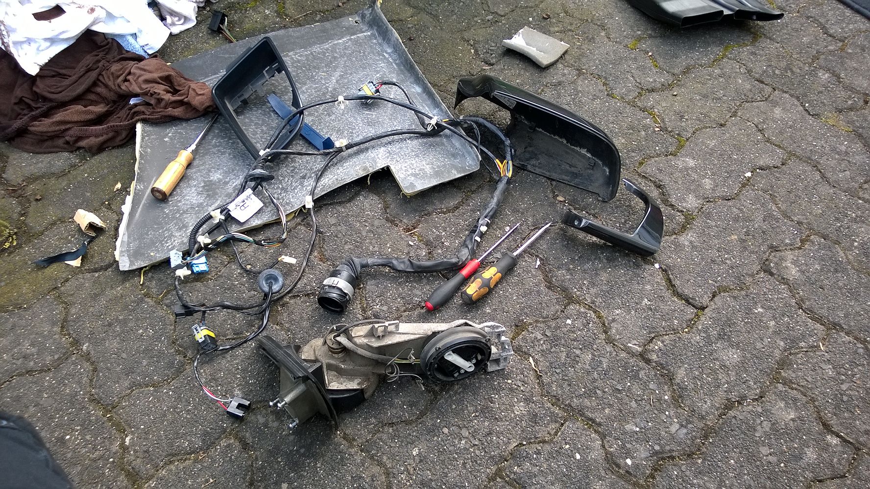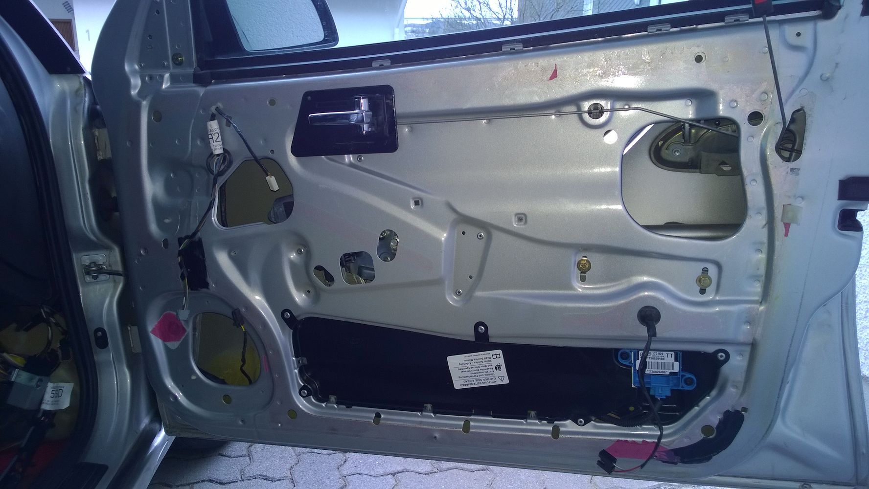 Der Einbau ist leider etwas viel Arbeit. Man muss auf jeden Fall beide Türen abbauen, da man sonst den Systemstecker in der Türseite mit dem Kabelbaum nicht rausbekommt. Der ist nämlich gesteckt und muss aus der Tür rausgeschoben werden. Die Pins dafür erreicht man nur im ausgebauten Zustand.