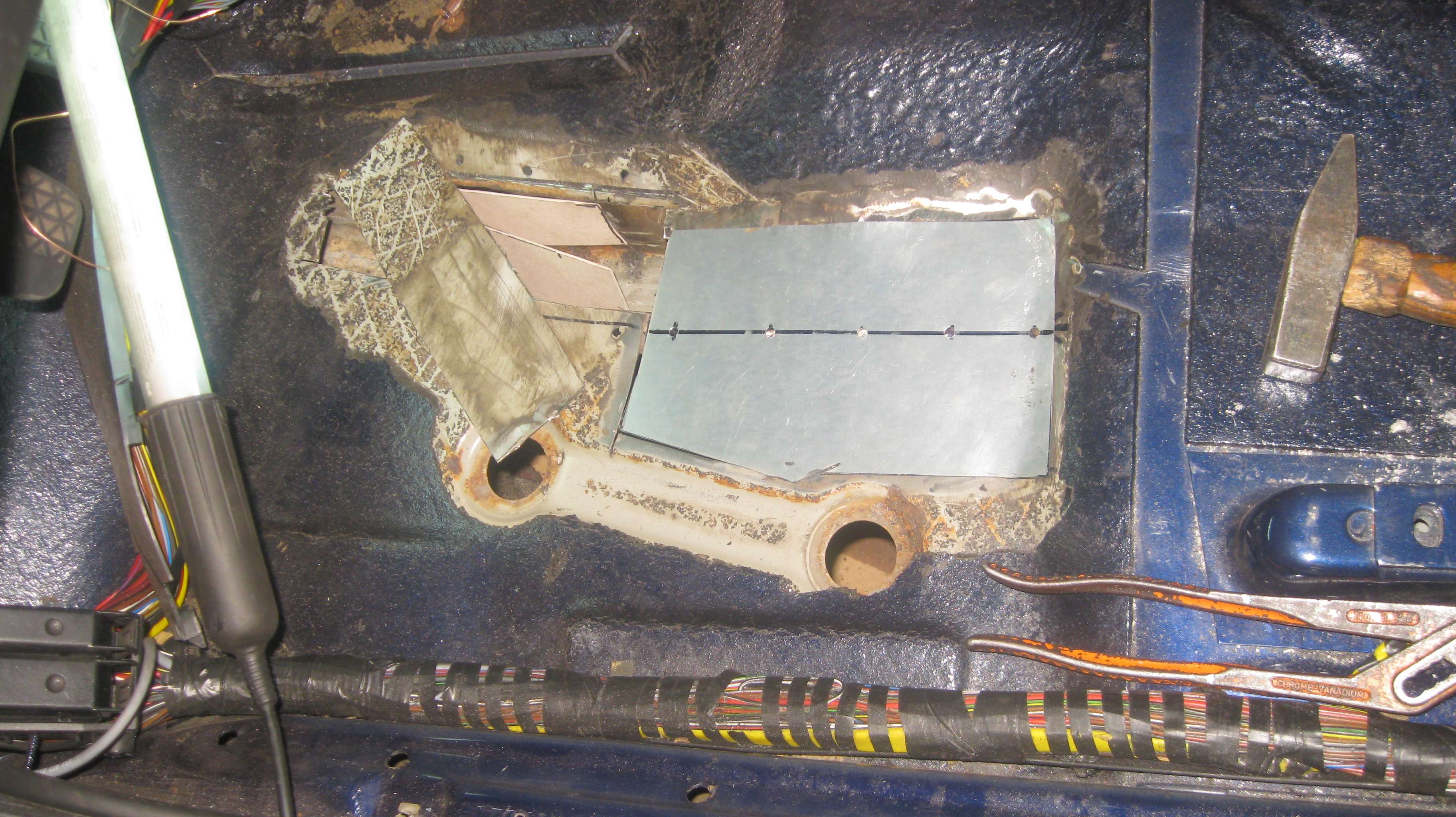 Ich bin ja derzeit im Fahrerfußraum meiner altem VFL Limo schwer am arbeiten. Besonders der Längsträger ist heikel, weil man da mit der Flex nur schwer bis gar nicht drankommt.Siehe Bild.