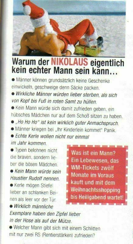 >> An den Weihnachtsmann <<, das ist ja zum Lachen.