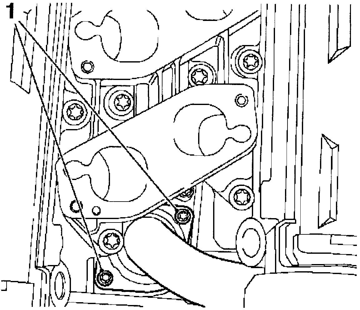 Ansaugbrücke abbauenKühlmittelrohr ausbauen Befestigungsschrauben (1) von Zylinderblock abbauen und Thermostatgehäuse mit Thermostat entnehmen.