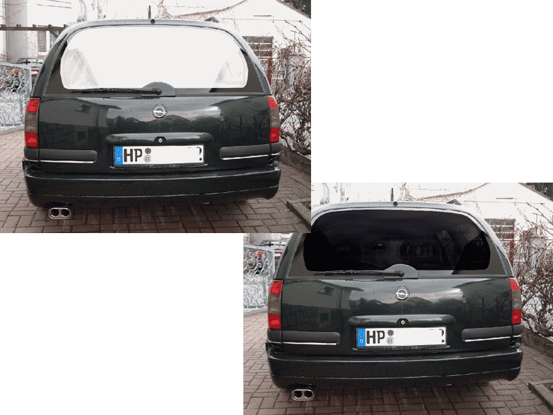 Meine Tönung ist dann letztendlich doch eher dezent ausgefallen. Von außen kannste kaum reingucken, von innen hat man aber (fast) den vollen Durchblick.