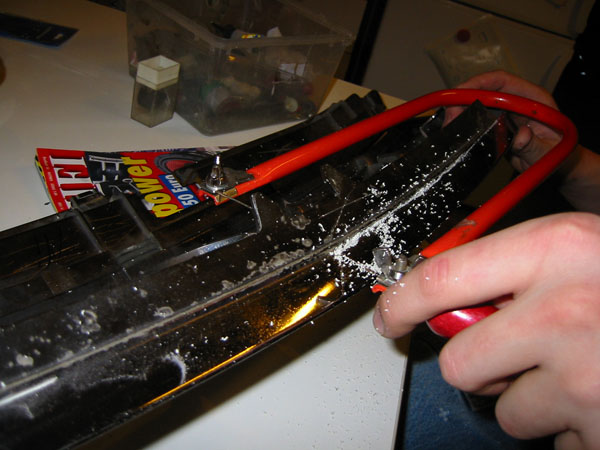 Der Alu-Spoiler ist seit ein Paar Tagen ab, da er mit schwarzem PVC überzogen wird.