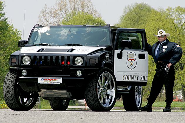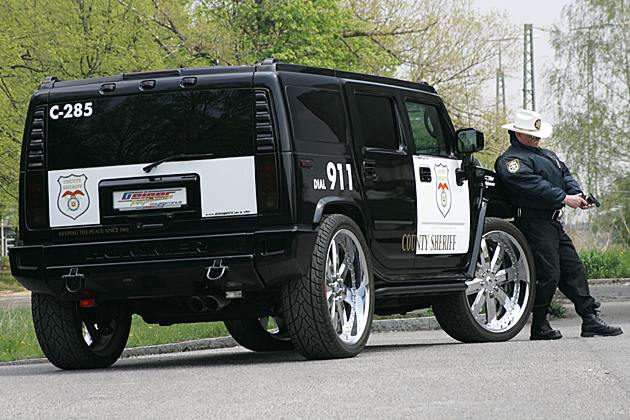 #5 Der Auftrag eines texanischen Sheriffs, sein neues Dienstauto in den schnellsten Polizei-Hummer der Welt zu verwandeln, war selbst für die Spezialisten des Münchner Tuners Geiger eine besondere Herausforderung. Die Grundlage für die schnelle Polizei-Wuchtbrumme bildet ein Hummer H2. Um dem Wagen mit der blau-roten Stroboskop-Signalanlage und der ohrenbetäubend lauten Polizeisirene auch Bullenkräfte zu verleihen, wurde der Hubraum des V8-Motor auf 7,0 Liter vergrößert. Der Hochleistungsmotor wurde unter anderem mit einem Kompressor aufgerüstet.