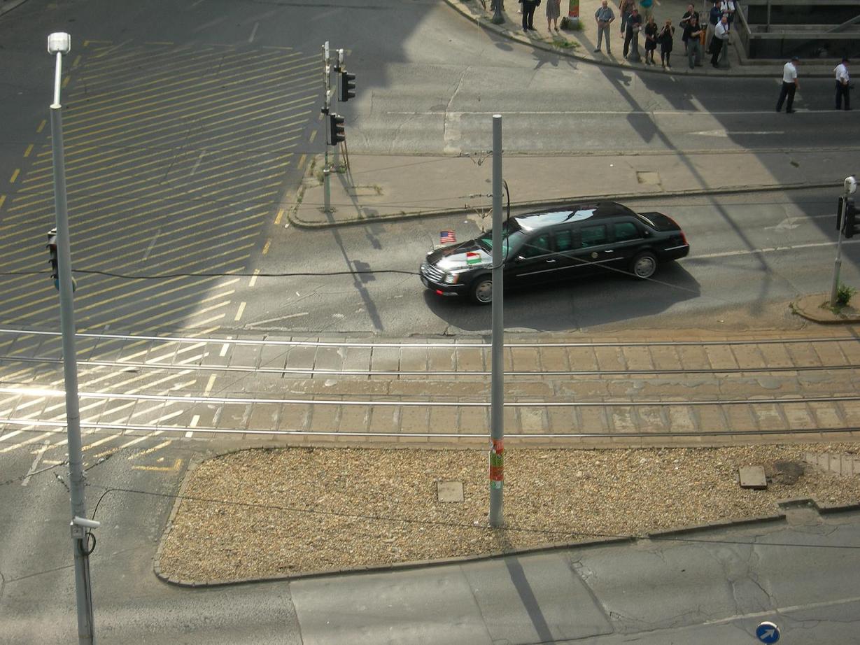 8) Bei dem Omega müsste es sich um ein Begleitfahrzeug der SG (Schutzgruppe) handeln. Dieses ist meisst vom Besuchsland gestellt. Bush lässt nur seine direkten Fahrzeuge (Die langen, schweren Caddies sowie die Geländewagen davor und danach) mitbringen. Geführt wird dann der Konvoi von mehreren Vorrausfahrzeugen, die zum Teil auch aus Personal der Polizeien vor Ort bestehen.