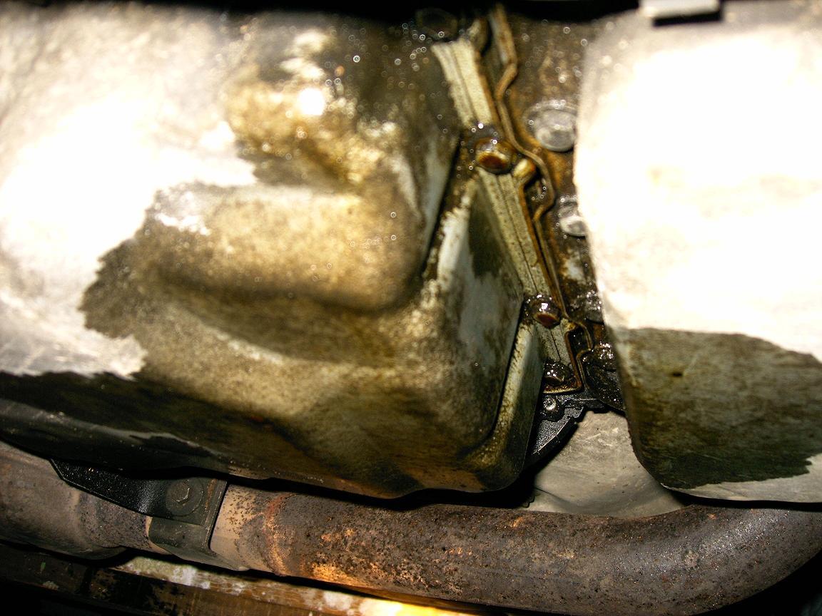 Das Öl kommt auf der Seite von der Schaltwalze aus dem Getriebe. Du must mal rechts neben der Schaltwalze den Stecker anfassen (Wenn du von der Fahrerseite aus unter das Auto kuckst ein Stück rechts neben der Schaltwalze ist ein mehrpoliger Kabelstecker) der wird bei dir Bestimmt auch undicht sein.Wenn du jeden Tag fährst kommt da kaum Öl raus. Läst du ihn aber ne Weile stehen drückt da das Öl raus und läuft dan nach vorne zwischen die beiden Ölwannendichtungen.
