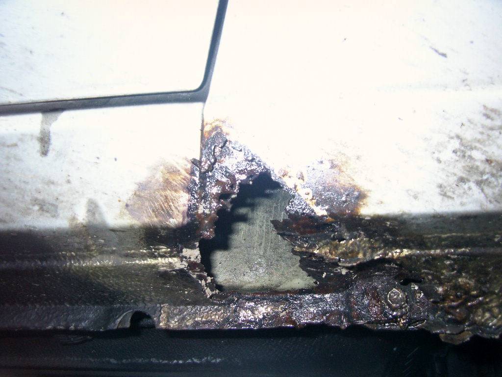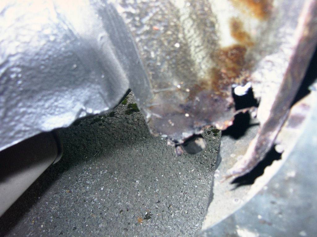 Dann ist noch vorne Rechts am Schweller, dort wo der Kotflügel befestig ist, dort ist auch ein ca. 15 cm großes Loch.