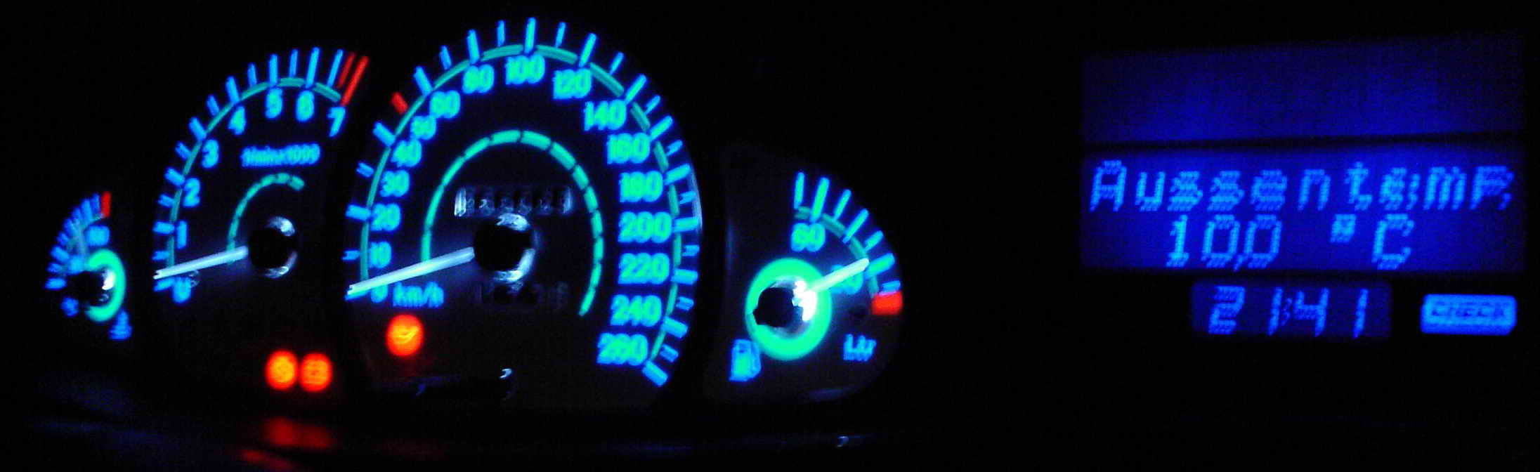 Haben das genau so gemacht, wie oben beschrieben. Mir war allerdings das rot der Zeiger und der Kilometeranzeige nicht hell genug. Deswegen habe ich die LEDs durch folgende ersetzt: