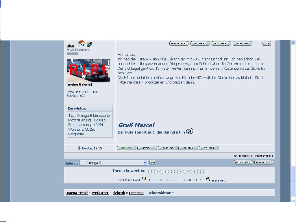 Ich habe am Wochenende in meinen Omega die Scheinwerfer vom Facelift (H1/H7) eingebaut. Heute hab ich gemerkt das der linke Lichkegel am ende rot schimmert und der rechte Lichtkegel am ende Blau/Lila. Der rest ist einwandfrei in normaler Farbe. Das kommt mir ein bisschen komisch vor. Die Lampen sind die auf dem Bild. Ich weis ja leider nicht ob das so normal ist, ich hatte ja bis jetzt nur die Milchglas SW´s. Oder soll ich mal andere Lampen probieren?? Ich freu mich schon auf Eure Antworten.