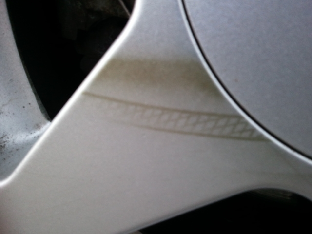 Hallo habe heute diesen Streifen auf meiner Alufelge vorne links entdeckt . Es ist nicht abzubekommen wie eingebrannt .