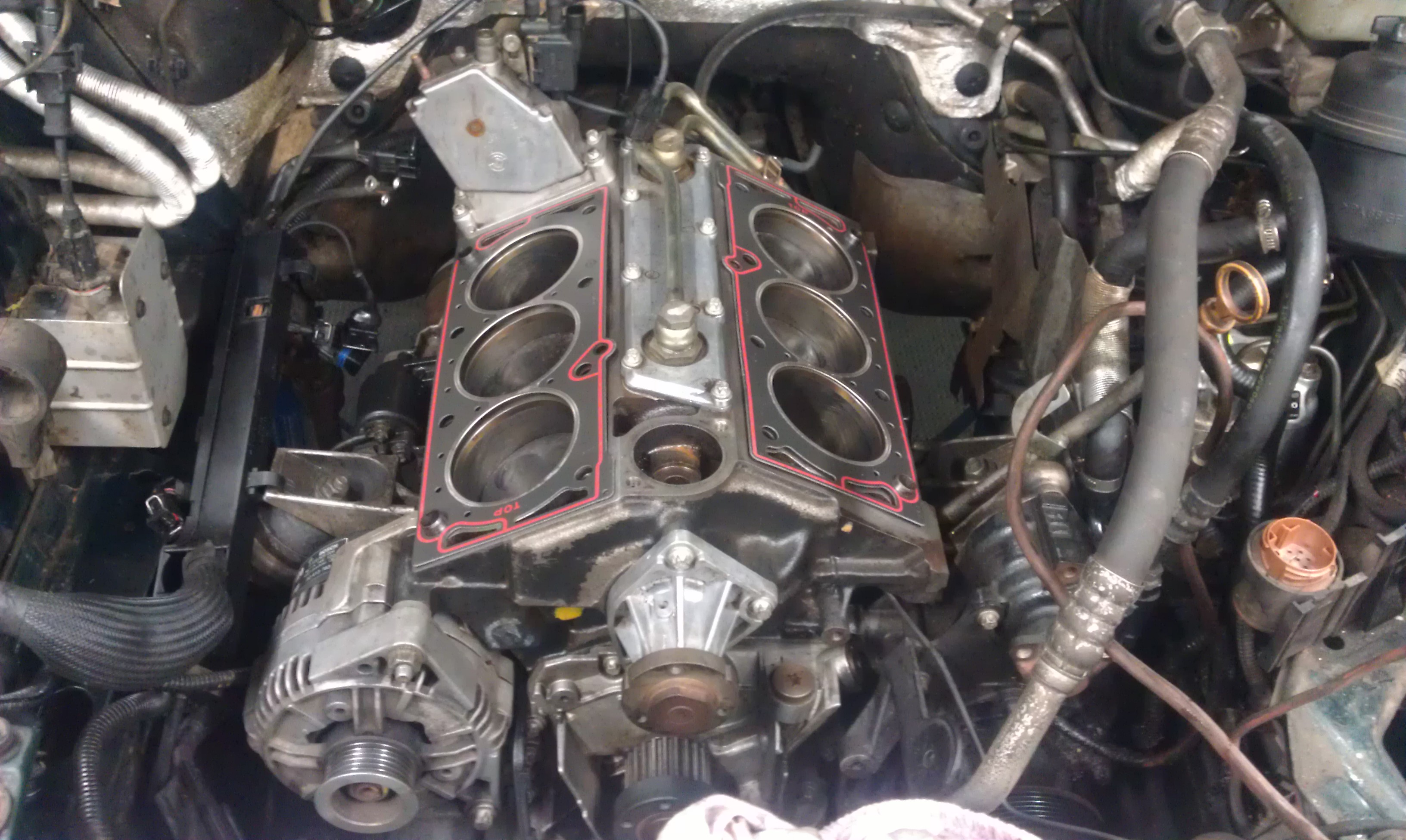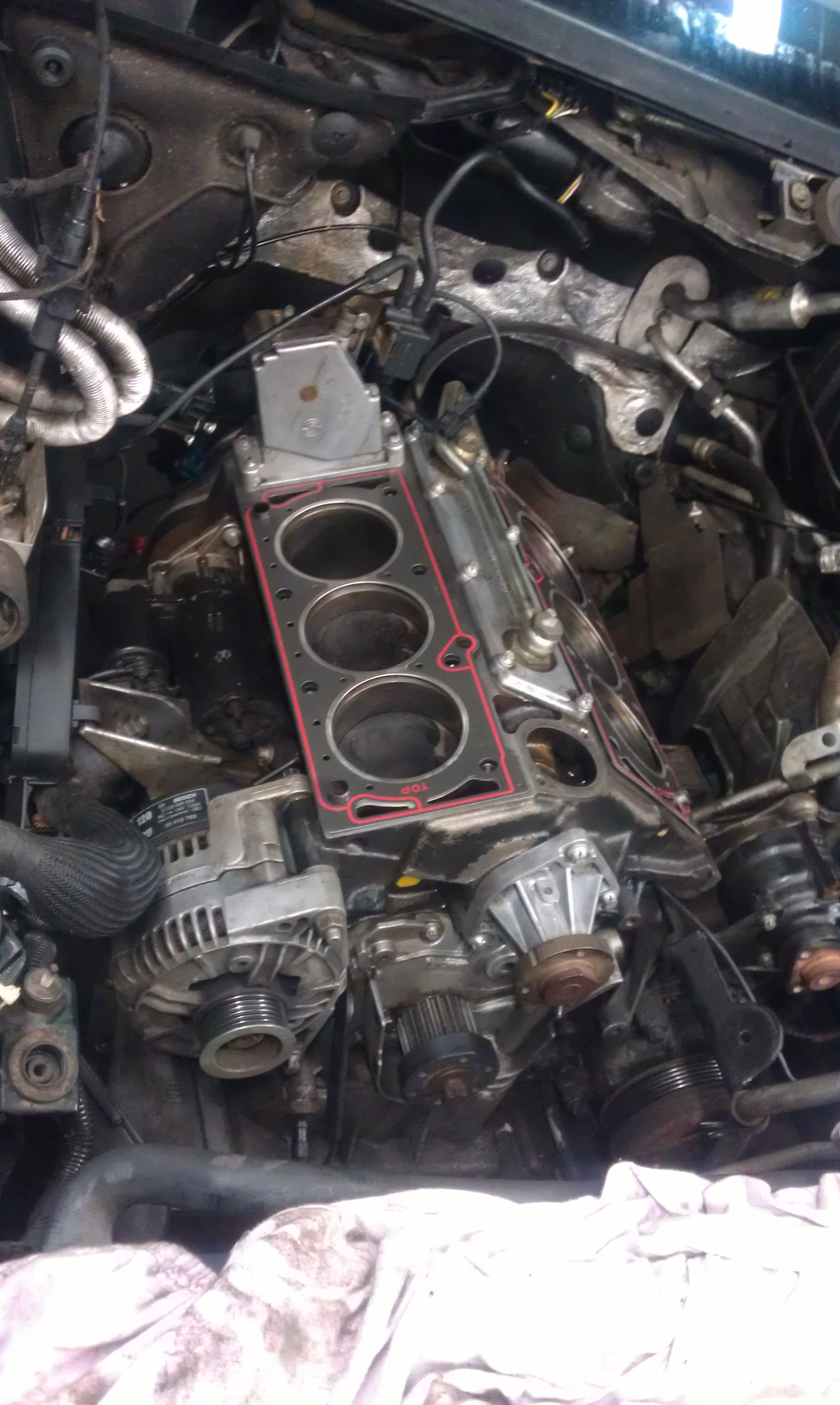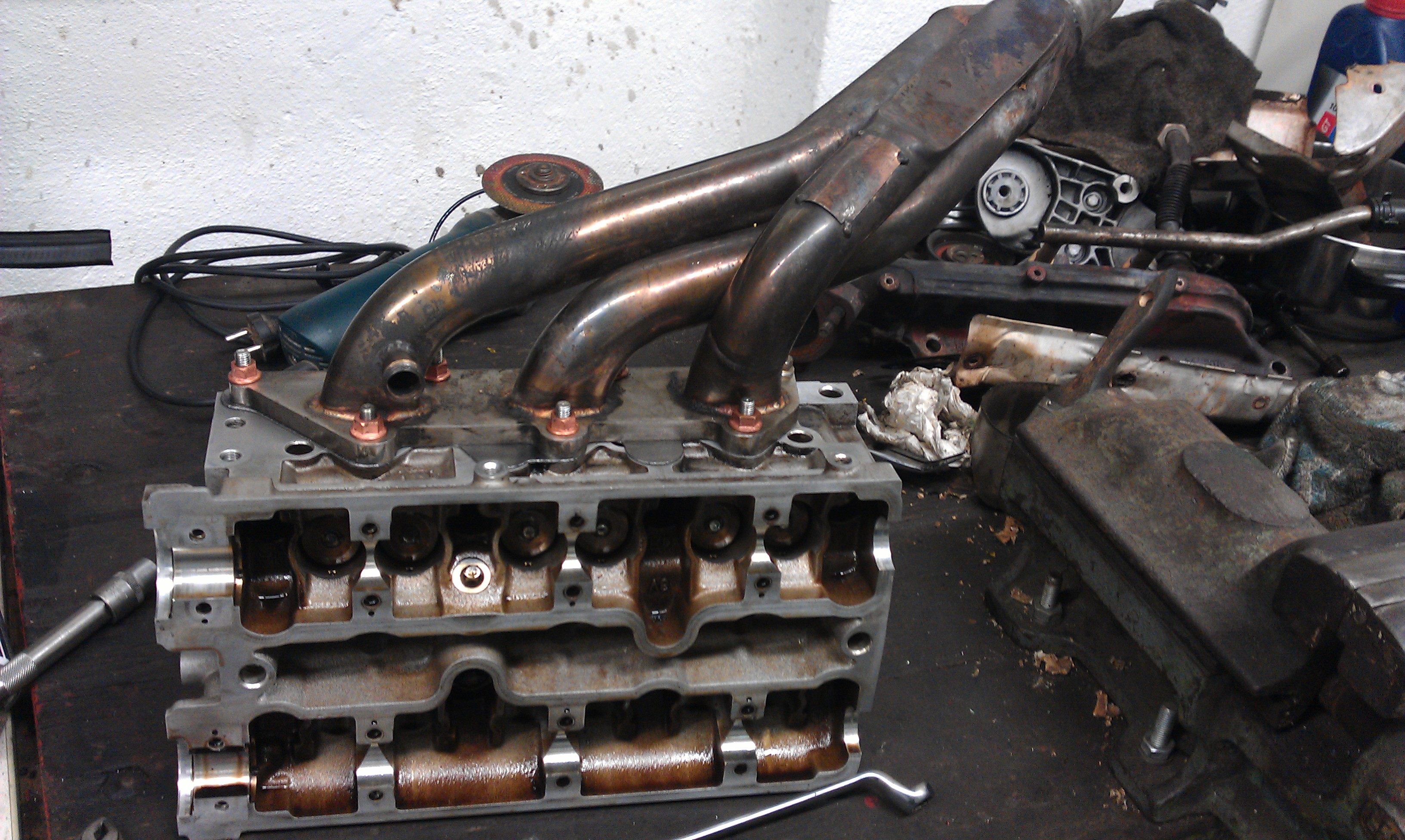 , ich wollte welche habe nicht um etwa extrem Leistung zubekommen was eh nicht so ist, sondern weil ich Edelstahl-krümmer habe und mir kein Kopf über reißen oder verziehen der Krümmer machen brauche.So Tag 3: stand an Mittags waren die Köpfe zurück und wir konnten in ruhe(ich hatte ja ein Ersatzauto weshalb es nicht sooooo wichtig war mein Omega fertig zubekommen) anfangen alles wieder zusammen zubauen und mehr oder weniger alles zu beenden, also ein Probelauf gab es abends doch noch, sind fast fertig geworden und es war sehr laut weil die Krümmerrohre noch angepasst werden mussten somit haben die Krümmer richtig krach gemacht.