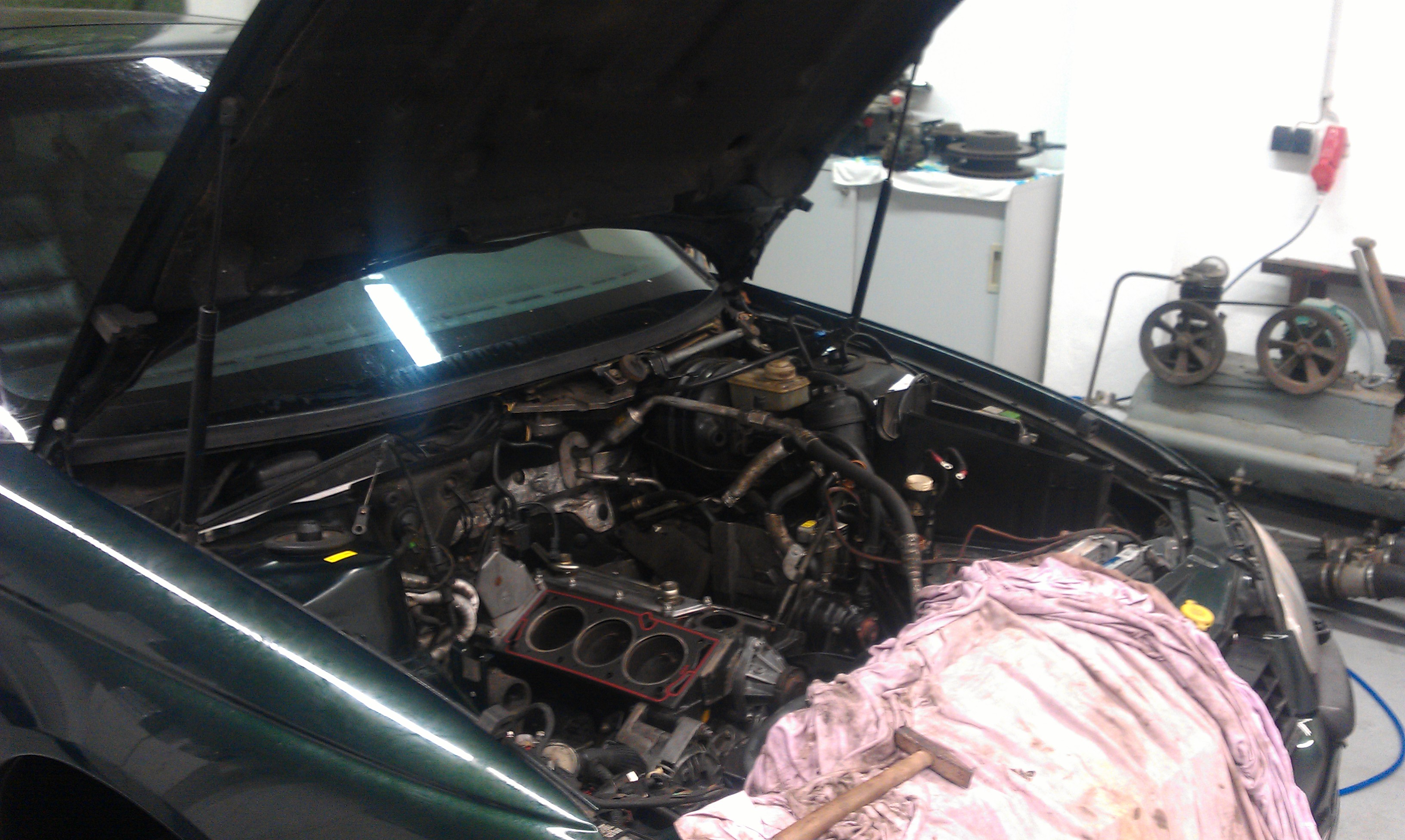 Ja fange ich mal an, also wie ihr alle wisst hat mein Omega B sehr starken Wasserverlust gehabt und ein Stehbolzen war im Kopf abgerissen, deshalb musste ich mir ein WE zeit nehmen um das 3 Liter starke Herz zu zerlegen mit einem der besten Opel-Schrauber den ich kennen lernen durfte (über´s OMEGA-FREAK-FORUM) ,,Tom_seni´´ ich bedanke mich Rechtherzlich.