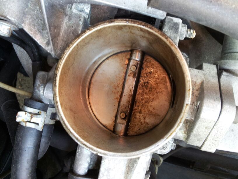 Die Drosselklappe sieht auch noch ok aus. Sie hat zwar Ablagerungen, ist aber noch nicht so schlimm, wie in der Anleitung. Leerlaufregler habe ich noch nicht abgebaut, da ich nur kurz zeit hatte.