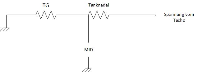 Mein aktuellster Ansatz ist das die Tanknadel (bei meinem Model ja noch kein Servomotor) ein gewissen Widerstandswert hat der in Reihe zu dem Tankgeber geschaltet ist und somit durch eine angelegte Spannung X und dem daraus resultierenden Stromfluss je nach Füllhöhe des Tankes (Widerstandswertänderung) ausschlägt. Da das MID ja parallel zur Tanknadel dann abgegriffen würde, würde dieses nur den Spunngsabfall Messen. Diese Theorie kam mir, als ich bei 20l Tanknadelanzeige an der MID 8,9 V Gleichspannug gemessen habe, bei keinem Tacho angeschlossen eben 0V.