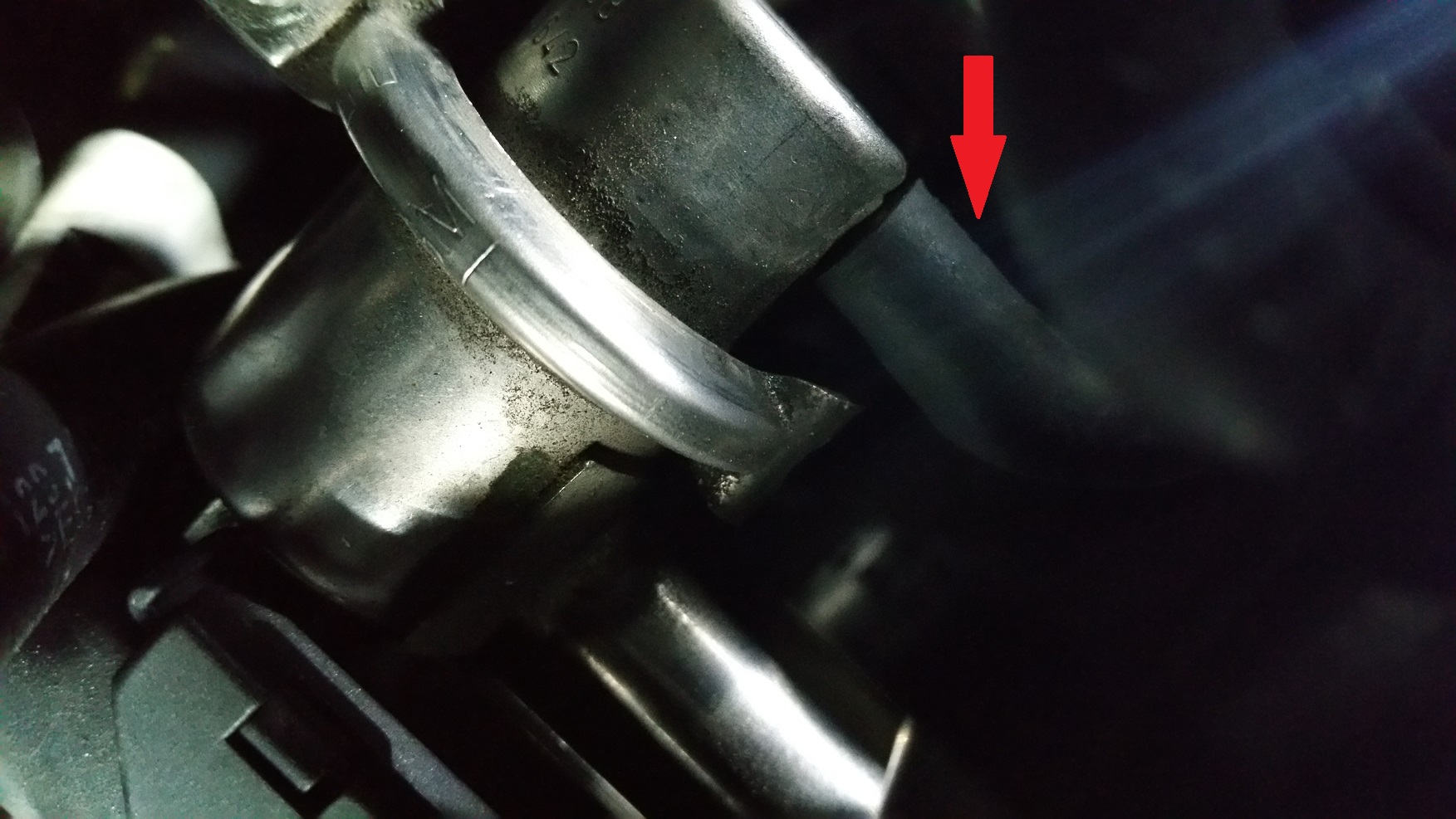 Ich habe aktuell nur das nachfolgende Bild parat. Wenn es sich bei deinem Schlauch um den Anschluß unten in der Mitte der Drosselklappe handelt siehst Du ihn ein wenig auf dem Bild. ( links und rechts wie auf dem Bild sichtbar) Es wäre die linke Leitung unmittelbar neben dem rechten Ansaugschlauch. Der Anschluß erfolgt unten an der Drosselklappe mit einem kleinen Gummiwinkel. Auf dem Bild kreuzt sich die Leitung dann. Sie geht über den Ventildeckel hinter an das Ende der Ansaugbrücke. Dort geht die Leitung über einen weiteren Gummiwinkel in eine Unterdruckdose