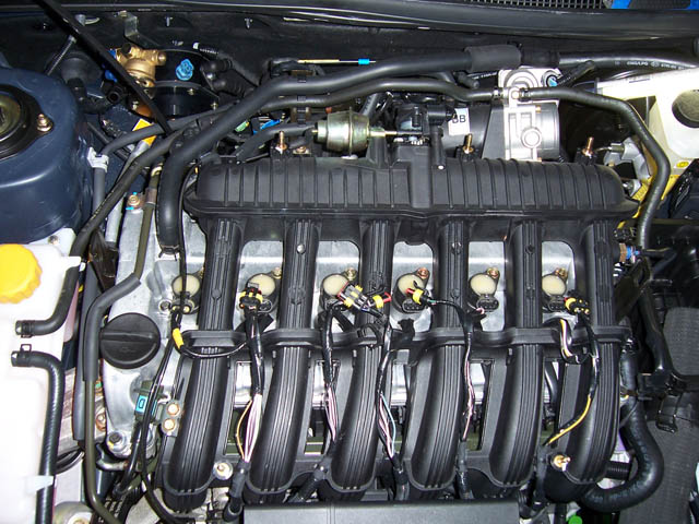 Motorhaube auf und was seh ich ein leicht abgeänderter 25 DT Block mit Einspritzung und das auch noch quer eingebaut.Hier mal ein Bild