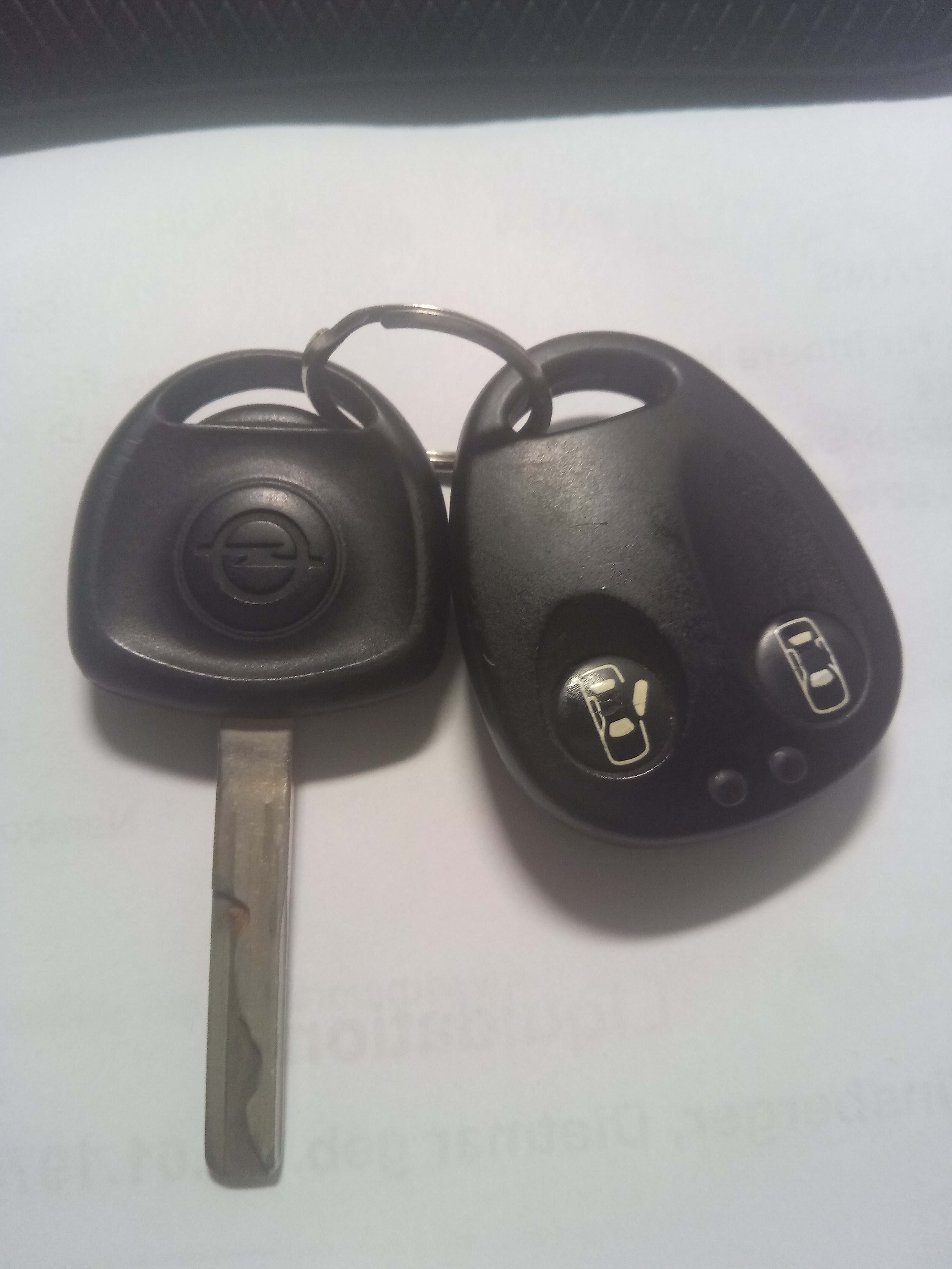Mein Schlüssel ist "nur" ein Schlüssel, ganz ohne irgendwelche Tasten. Zusätzlich dazu, in meinem Fall mit einem Ring verbunden, ist ein zweites, "beutelförmiges" Teil dabei, auf der Vorderseite 2 Tasten (eine macht AUF, die andere ZU).