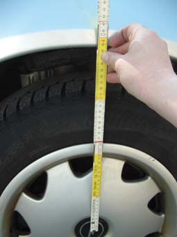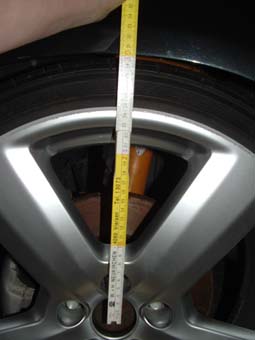 Abstand nabenmitte zur oberen Kotflügelkante sind bei mir eben nur 30cm beim originalen 39-40cm... habs dir extra in bildern festgehalten...