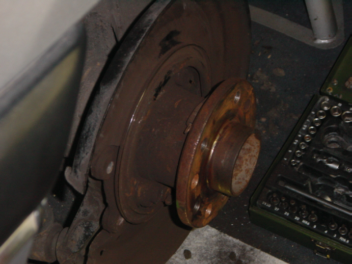 Also die Handbremse als solches war es nicht !! Die Beläge waren zwar total runter aber geschliffen hat es am Staubblech oder wie das Ding heisst . Habe extra ein Foto gemacht damit ihr seht was ich meine und nach vielen Stunden einsames Schrauben kam die wichtige Hilfe von Senator B Freak und in einer Stunde waren beide Seiten mit neuen Belägen versehen und fertig zusammengebaut . Naja Erfahrung geht eben über alles