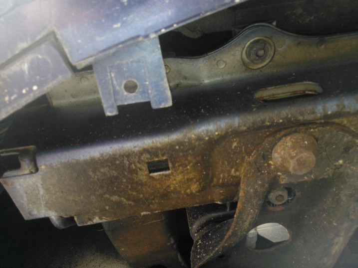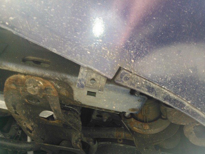 Vorne unten an der stoßstange sollten doch links und rechts 2 kurze plastikhalter an den rahmen gehen.