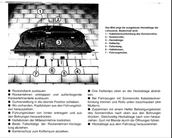 Es kann sein das sich die alte Hutablage keinen Milimeter bewegt, da hilft nur rohe Gewalt, da es sein kann das beim Einbau im Werk Scheibenkleber ab der Rand der Hutablage gekommen ist. Also nicht aufgeben, zum Ausbau guckst Du im Anhang.