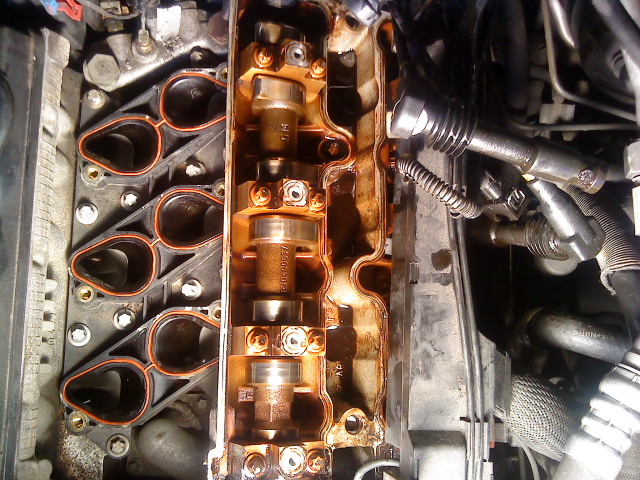So, jetzt habe ich die Trompeten und den in Fahrtrichtung linken Ventildeckel abgebaut.