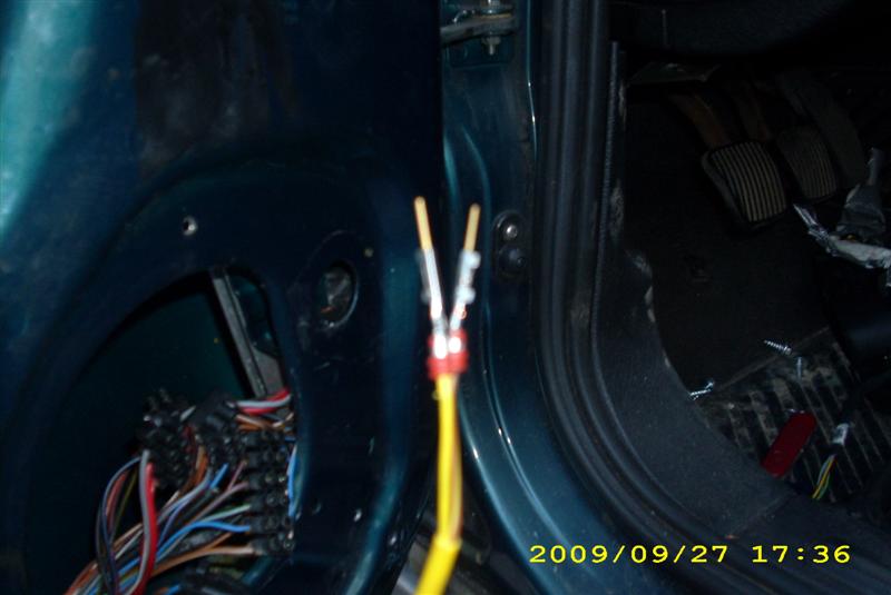das gelbe kabel läuft zu dem "deckel" in der unteren hälfte der tür, nehme an das ist der sensor vom seitenairbag, frag mich nur warum er so deaktiviert wurde. ![]()